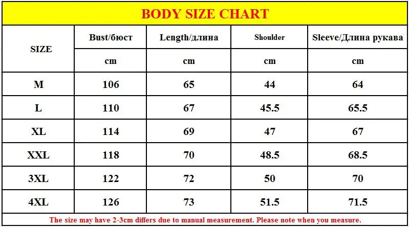 Таблица размеров
