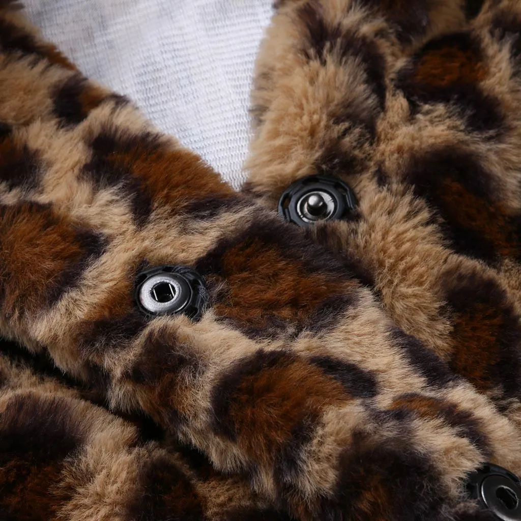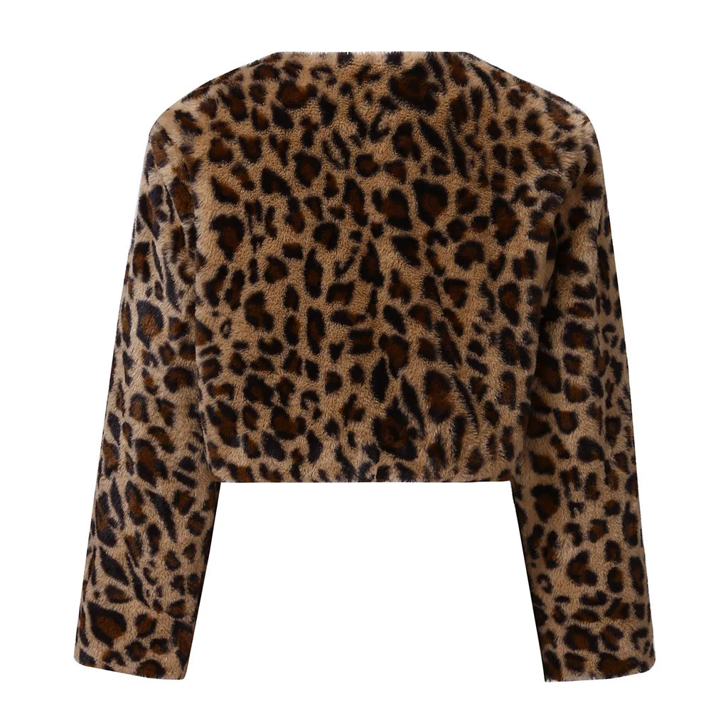 Модная женская теплая пушистая леопардовая зимняя повседневная верхняя одежда на молнии