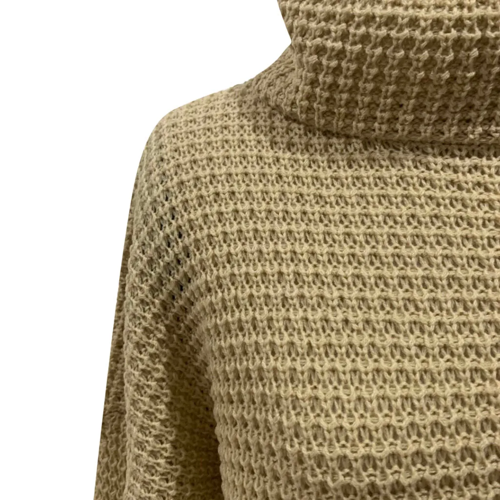 Womens Lady High Sweater Casual Solid Loose Long Sleeve Tops Slim Fit Pullover