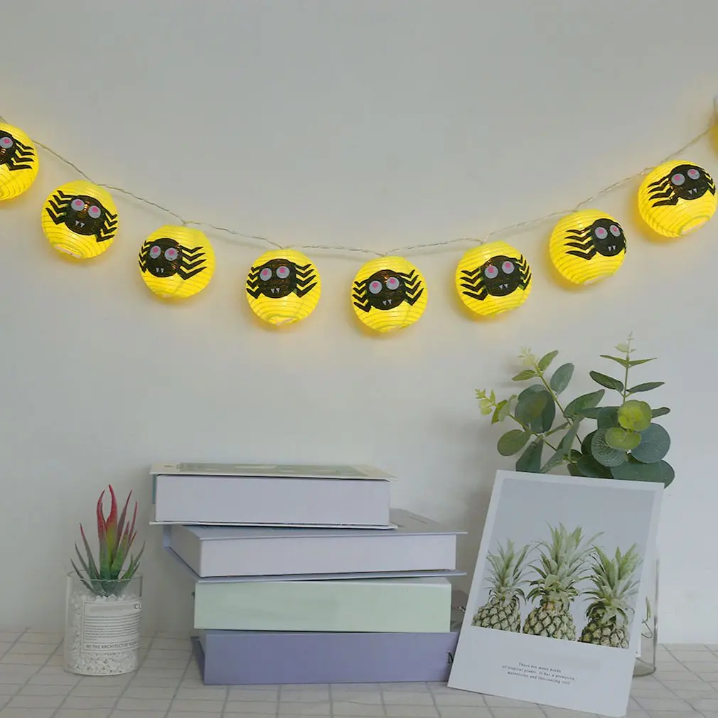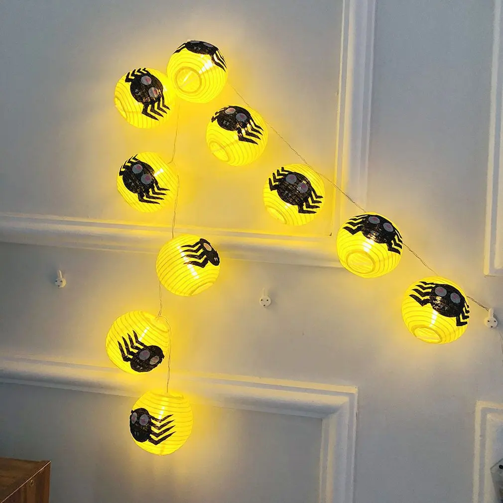 Bz1249 10Led Хэллоуин Желтый Паук блестящие бумажные фонари Хэллоуин место реквизит для обустройства призрак Фестиваль Декоративные струны