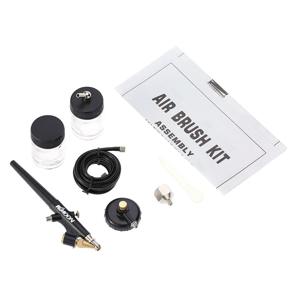 Включает в себя Аэрограф с тонкой головкой, шланг из полиуретана 5 футов, с крышкой прикрепить банку 22cc, регулятор и адаптер (1/4 "воздушный шланг от компрессора до меньшего шланга аэрограф.)