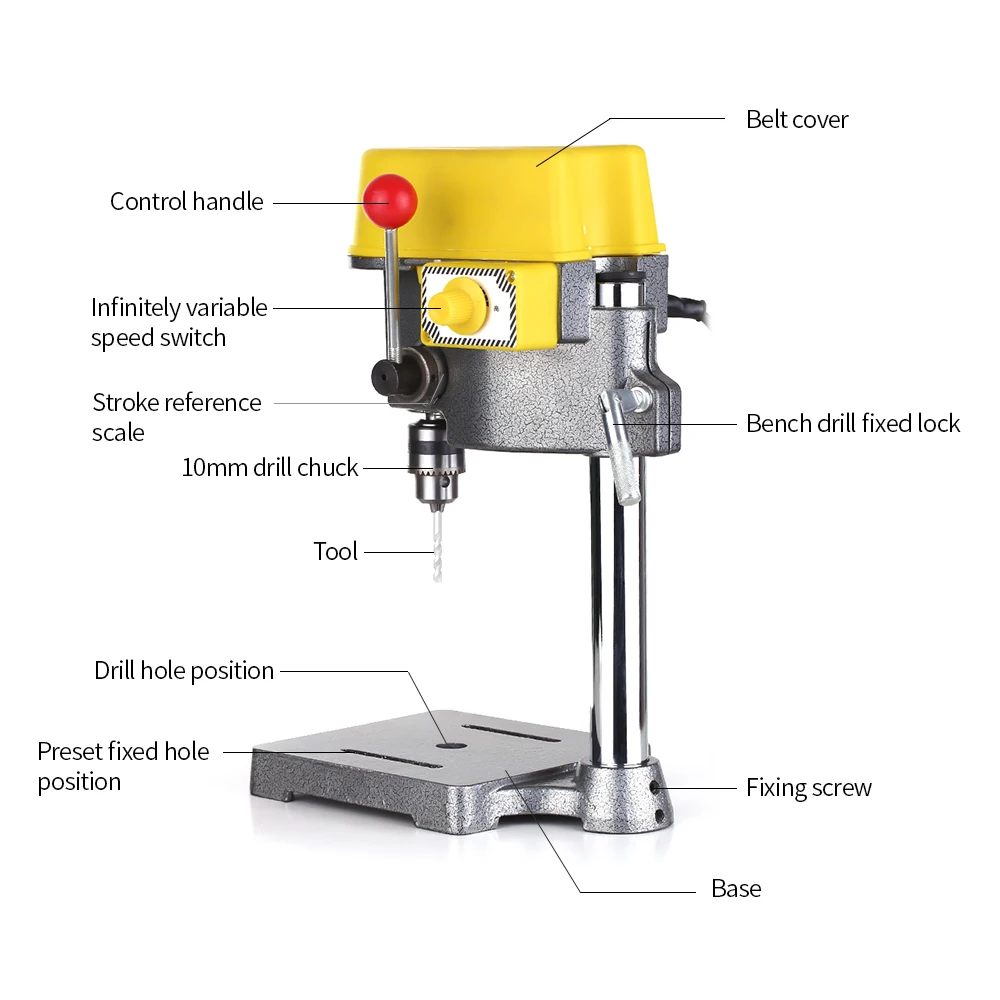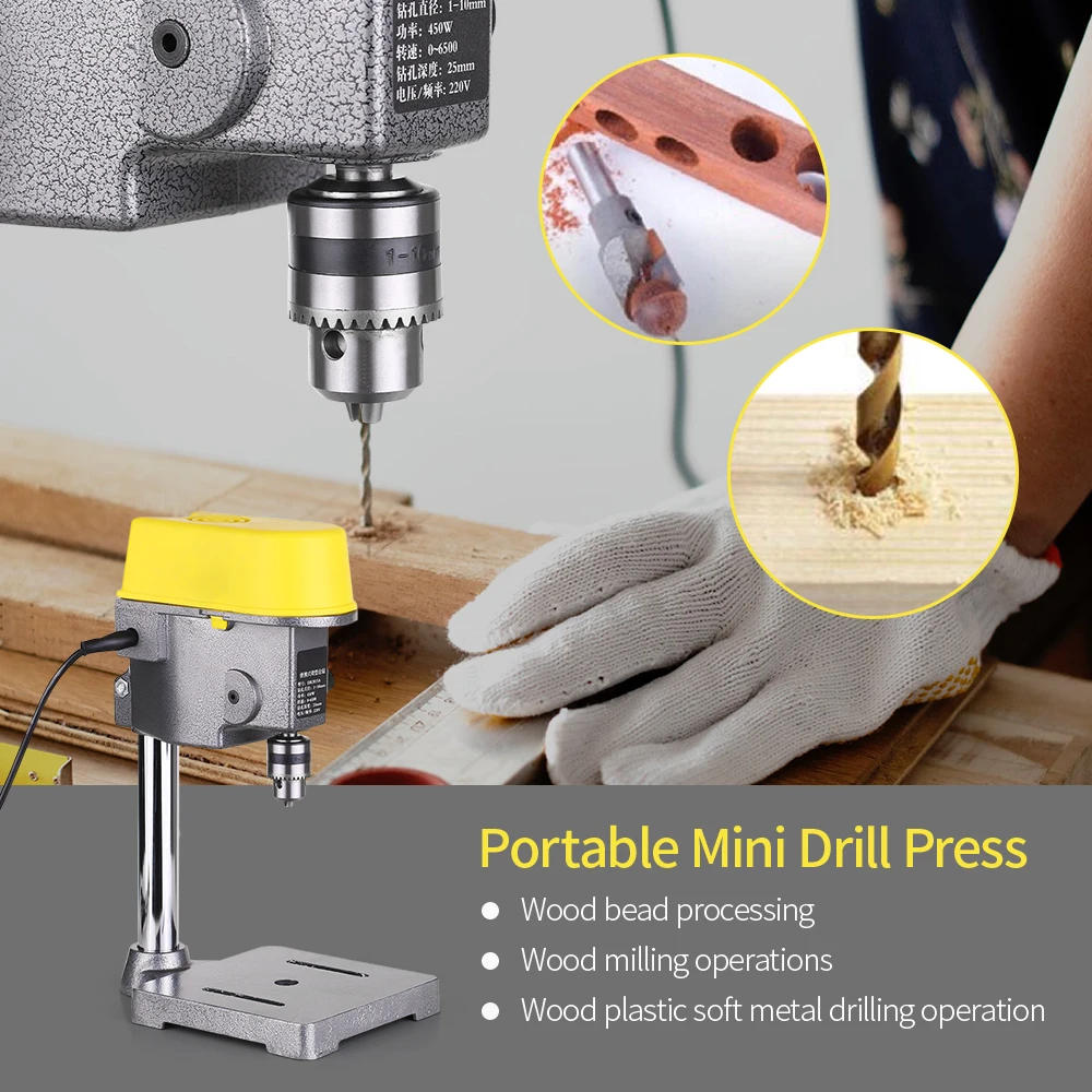 С помощью этого мини-сверлильного пресса вы можете сверлить точные отверстия, и он отлично подходит для небольшой и точной работы. Проще в использовании и точнее, чем ручные дрели. Он полезен для ювелиров, деревянных работников, механиков, любителей, дома, мастерской, искусства и ремесел.