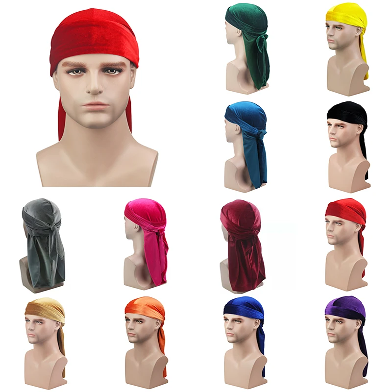 Бархат с длинным шлейфом для девочек на Durag Для мужчин в стиле «хип-хоп» тюрбан Для женщин Для мужчин Кепка Chemo дышащая бандана шляпа