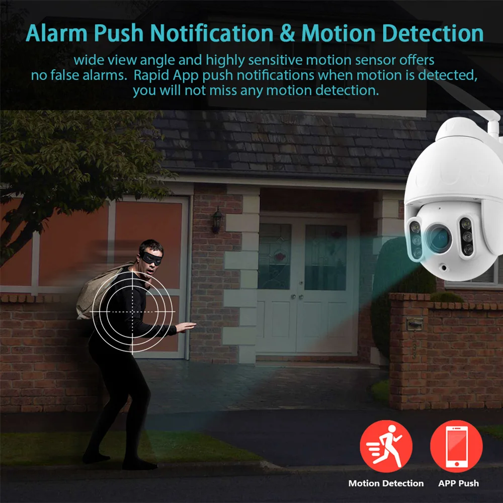 Вращение на 355 градусов PTZ, вращение на 90 градусов по вертикали и вращение на 355 градусов по горизонтали, вы можете контролировать угол поворота камеры с помощью приложения.