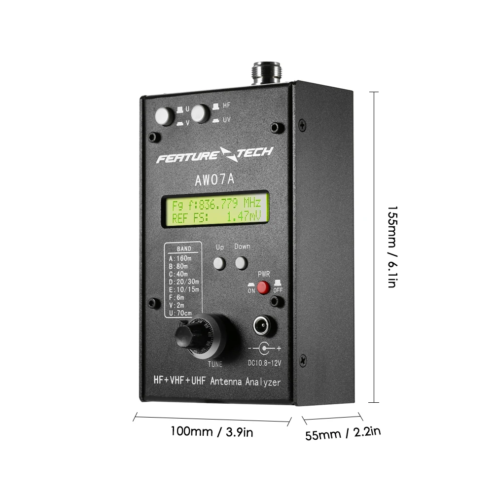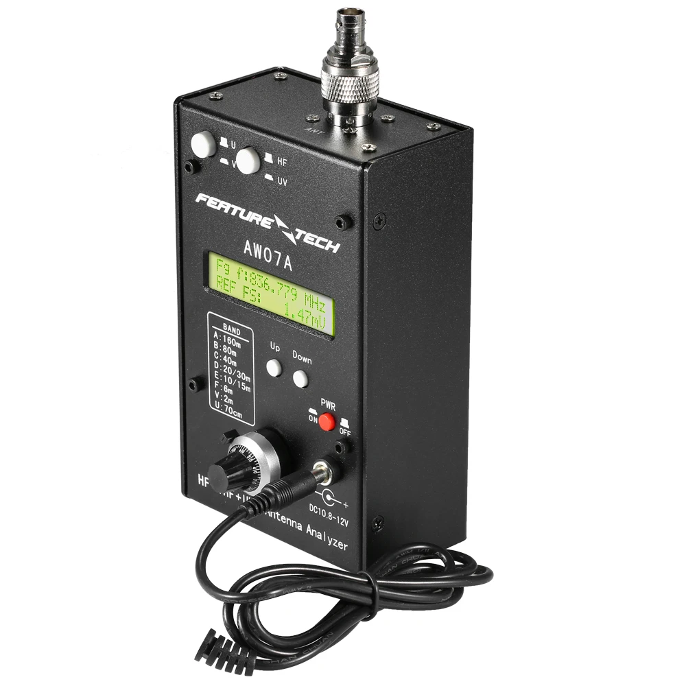 AW07A антенный анализатор-это компактный радиочастотный анализатор сопротивления с питанием от аккумулятора. Он может проверить состояние SWR вашей антенны, измерить сопротивление и компонент reactance и помочь вам решить проблемы антенны. Этот блок сочетает в себе шесть основных частей: переменный осциллятор, счетчик частоты, независимый осциллятор, Радиочастотный детектор 50 Ом, преобразователь A-D и микроконтроллер. Этот компактный продукт был построен, чтобы удовлетворить потребность в твердой конструкции и полевом тесте. Диапазон рабочих частот этого блока идет от HF и продлевается до 490 МГц. Диапазон рабочих частот данного устройства простирается от 1,5 до 71 МГц в шесть пересекающиеся полосы, и включает в себя SWR измерений на 85-185 МГц, 300-490 МГц.