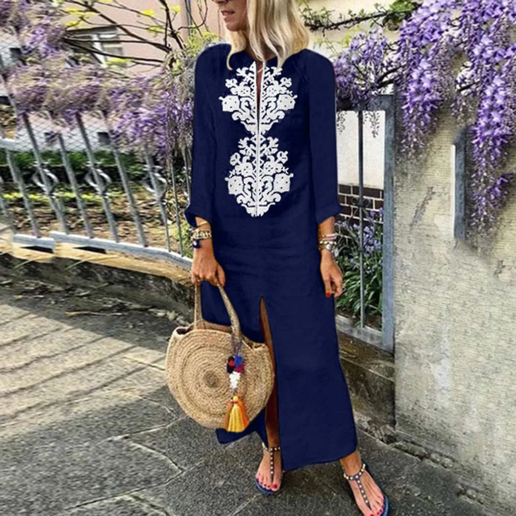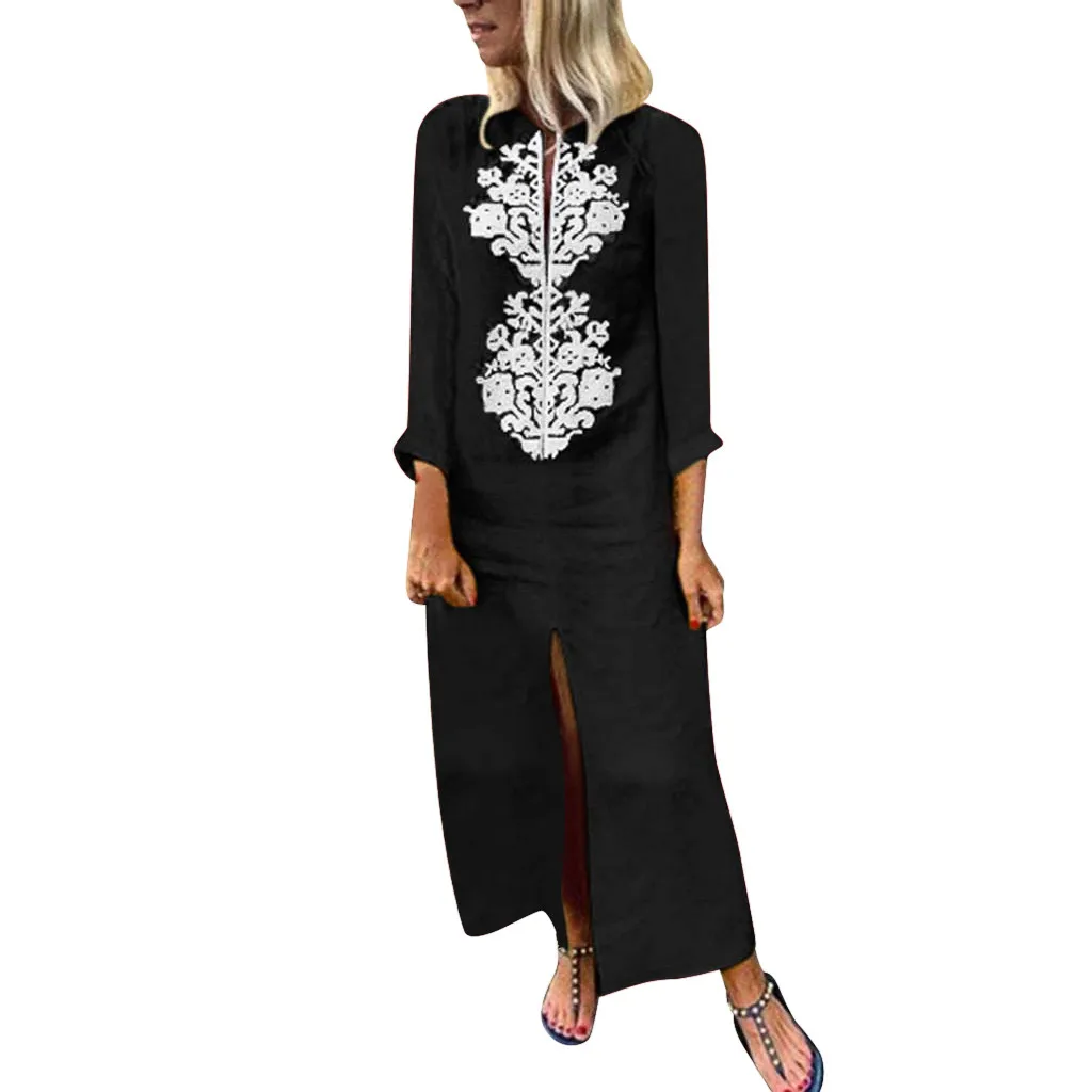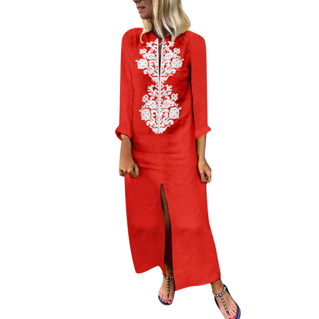 Женское платье макси с длинным рукавом, мешковатое хлопковое льняное платье-Кафтан