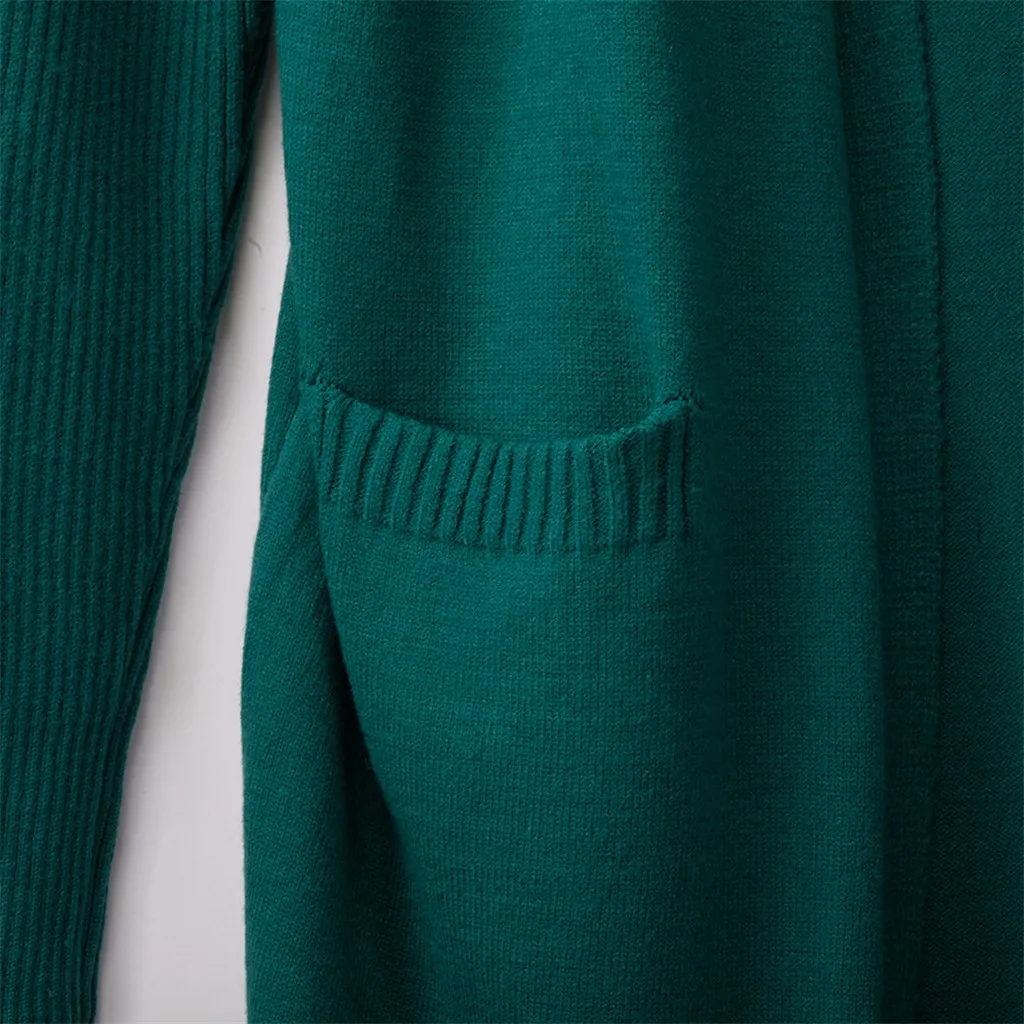 Женский Однотонный пуловер с круглым вырезом и длинными рукавами, Вязанный свитер большого размера