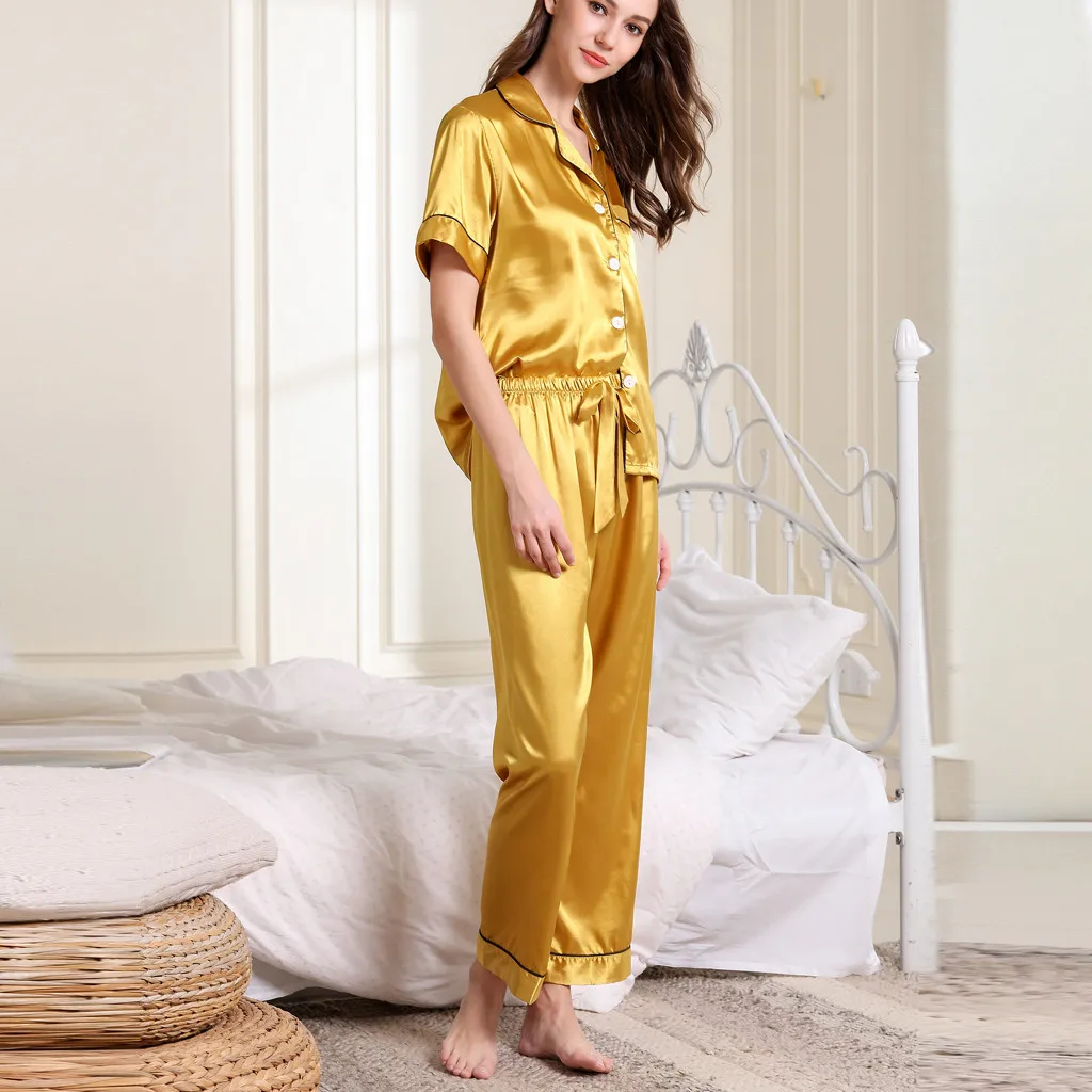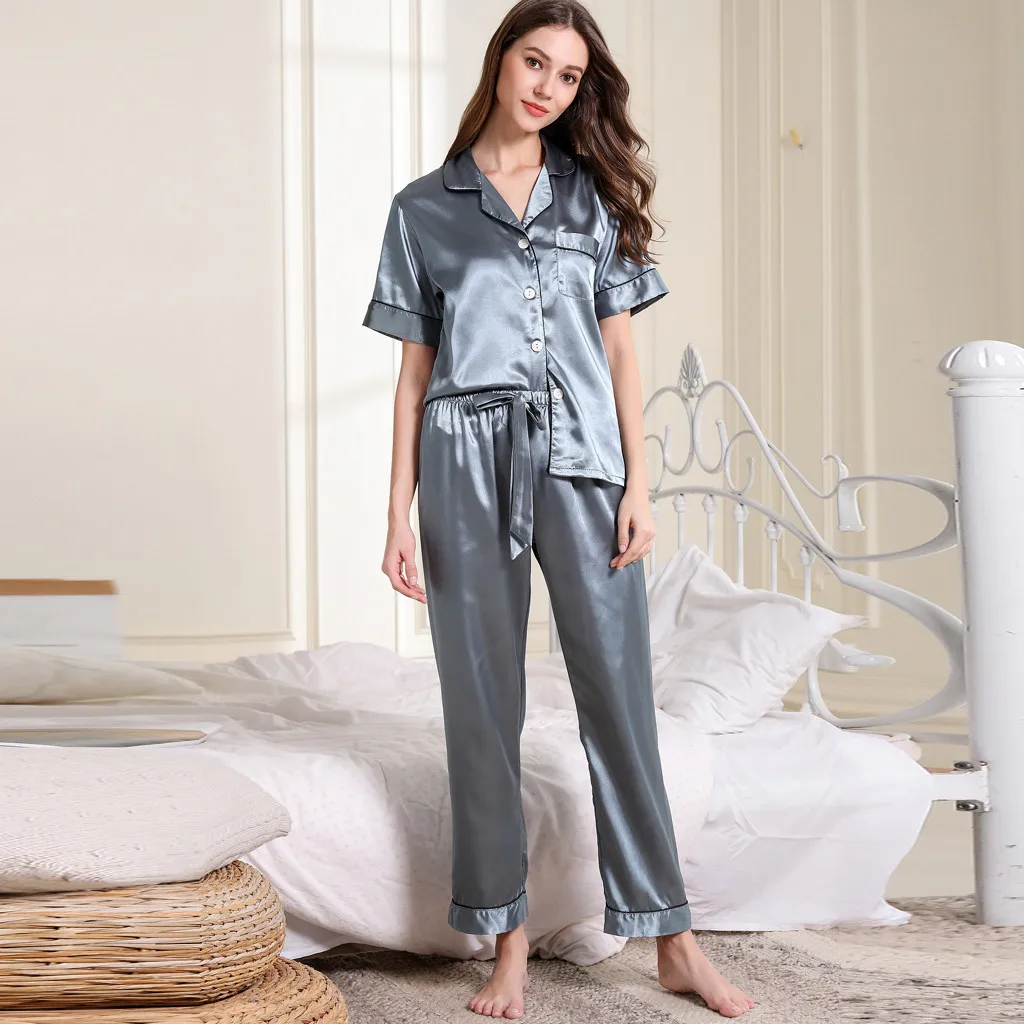 Женская пижама с коротким рукавом и длинными штанами; комплекты одежды для сна