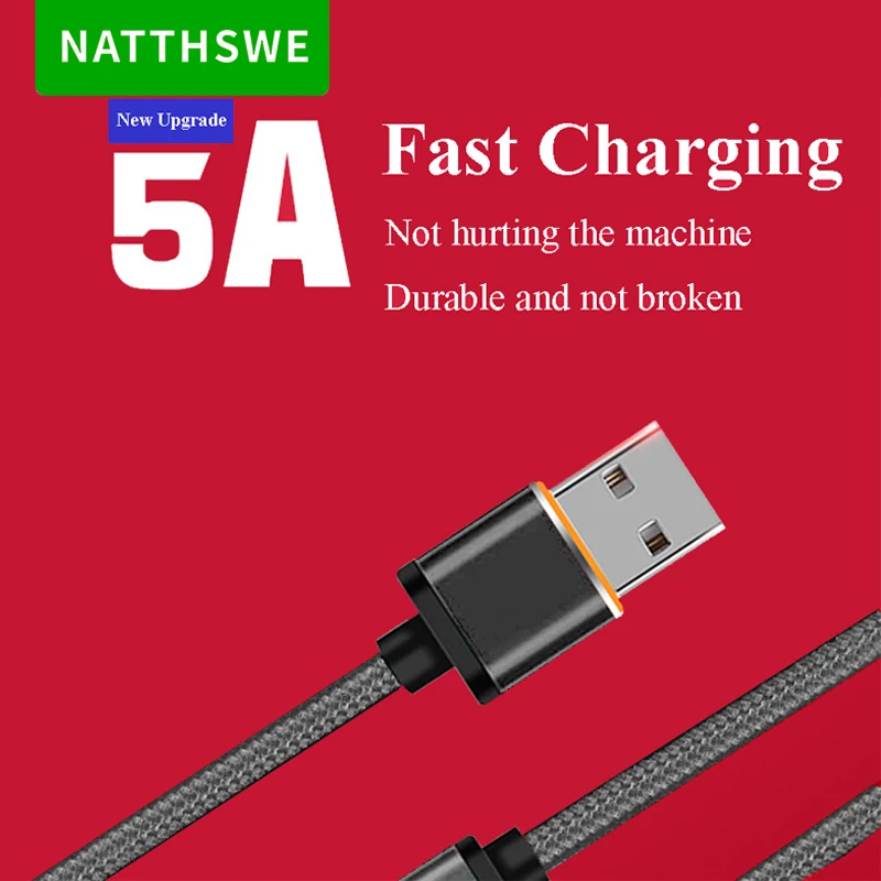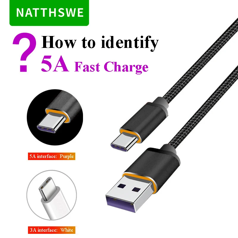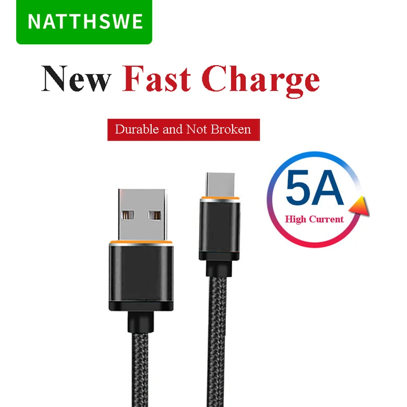 NATTHSWE 5.0A супер быстрая зарядка type-C USB кабель для передачи данных 1 м нейлоновая плетеная линия данных для huawei P30 P20 Xiaomi samsung