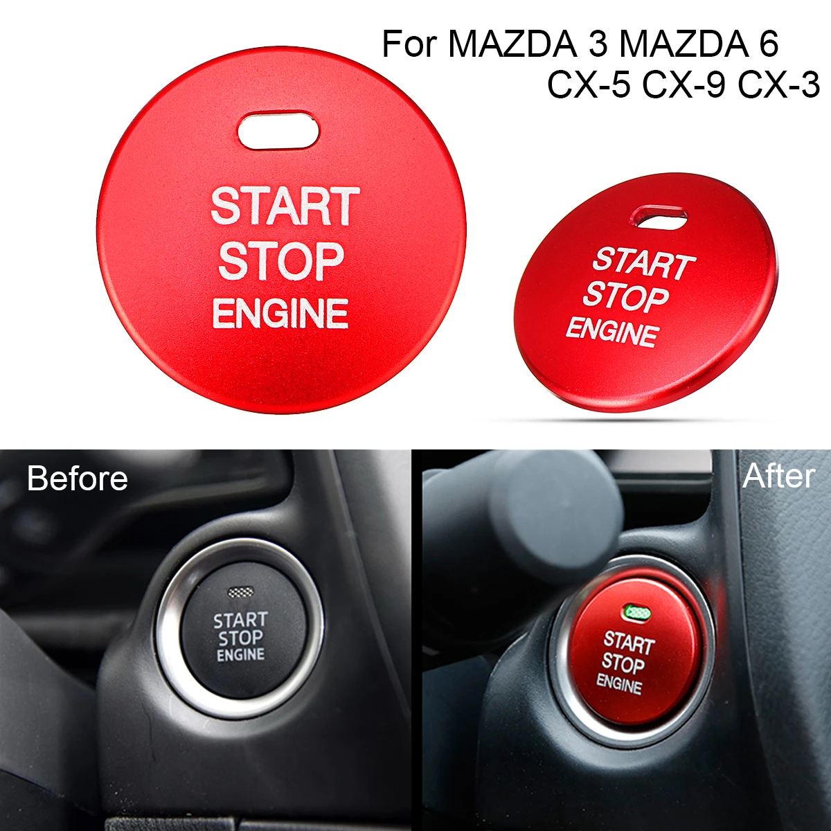 Алюминий кнопка запуска двигателя крышка Кепки Накладка для MAZDA 3 MAZDA 6 CX-5 CX-9 CX-3