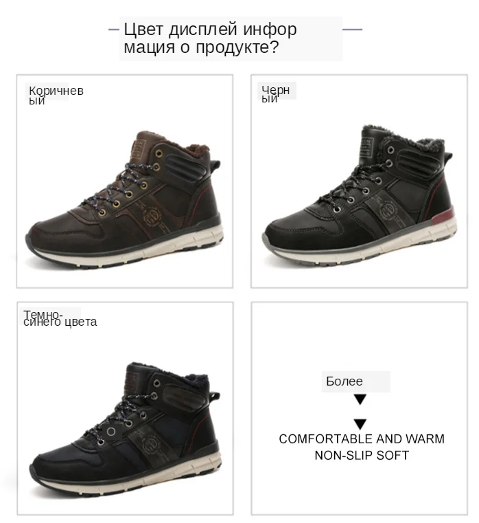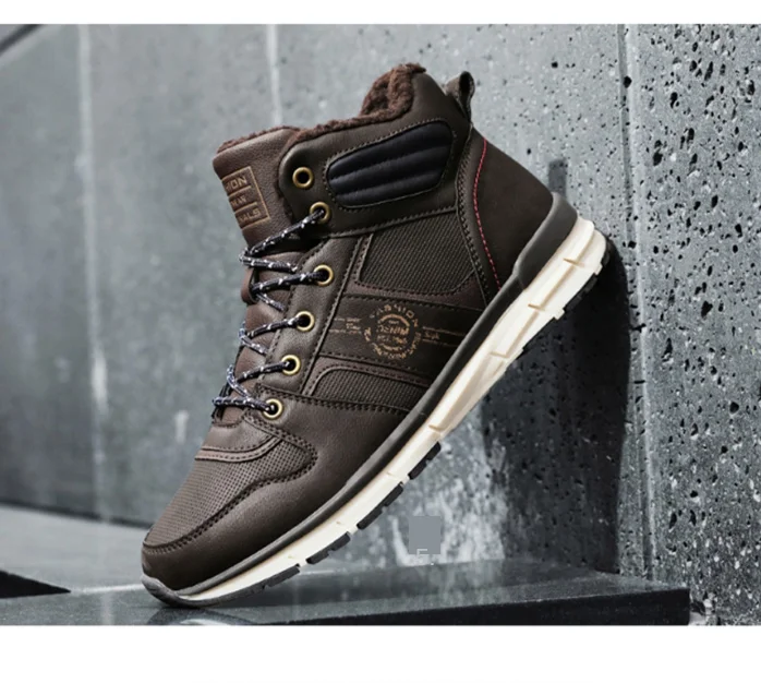 Мужские зимние кроссовки, водонепроницаемая кожаная спортивная обувь с высоким берцем, мужская уличная теплая обувь для бега, зимние кроссовки с мехом, большой размер 39-45