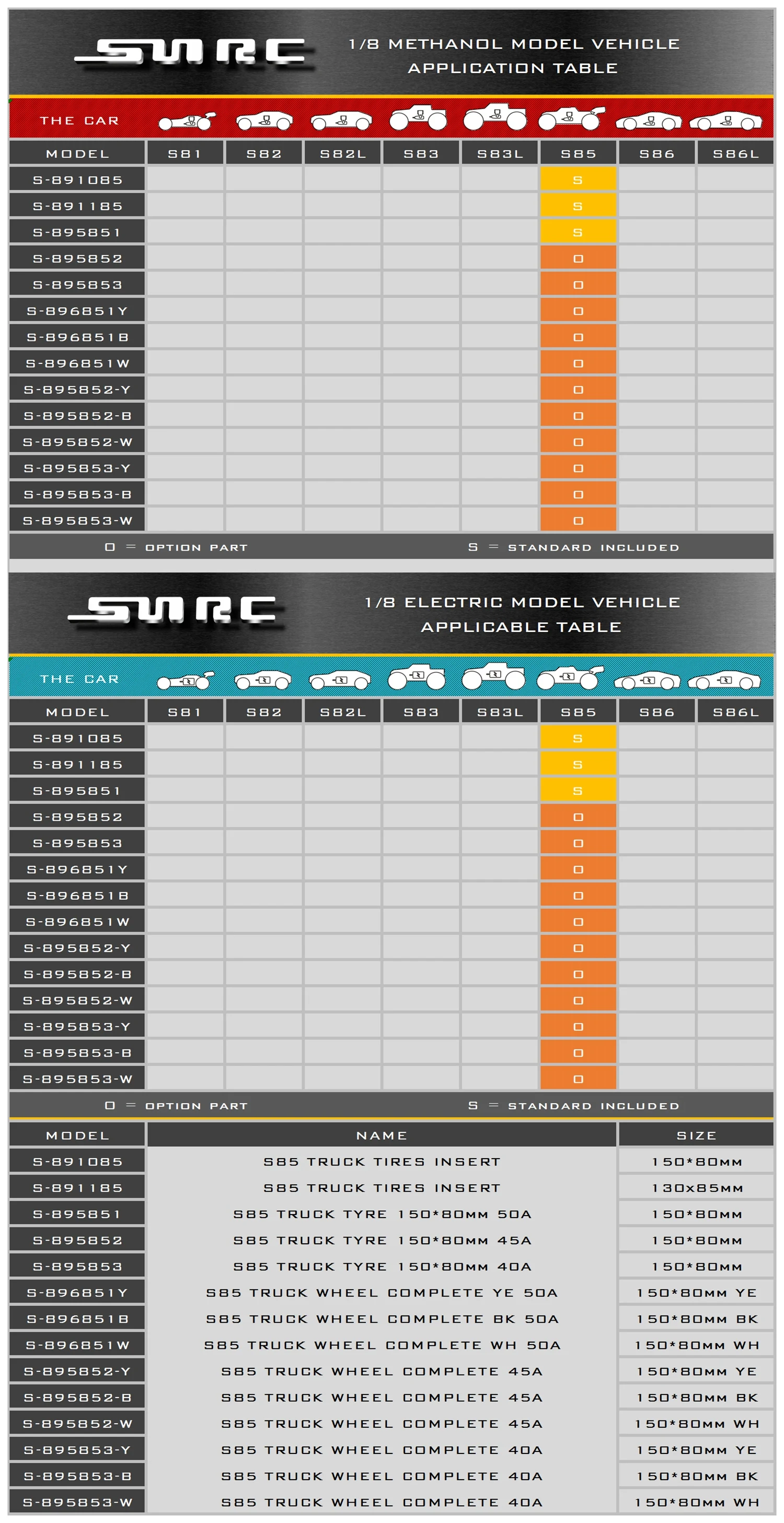 891085 S85 грузовые шины 891185 S85 грузовые шины 896851Y S85 колесо грузовика полное YE 896851B S85 колеса грузовика в комплекте BK 896851W S85 колеса грузовика полный WH 895852-Y S85 грузовые шины 150*80 мм 895852-B S85 грузовые шины 150*80 мм 895852-W S85 грузовые шины 150*80 мм 895853-Y S85 грузовые шины 150*80 мм 895853-B S85 грузовые шины 150*80 мм 895853-W S85 грузовые шины 150*80 мм