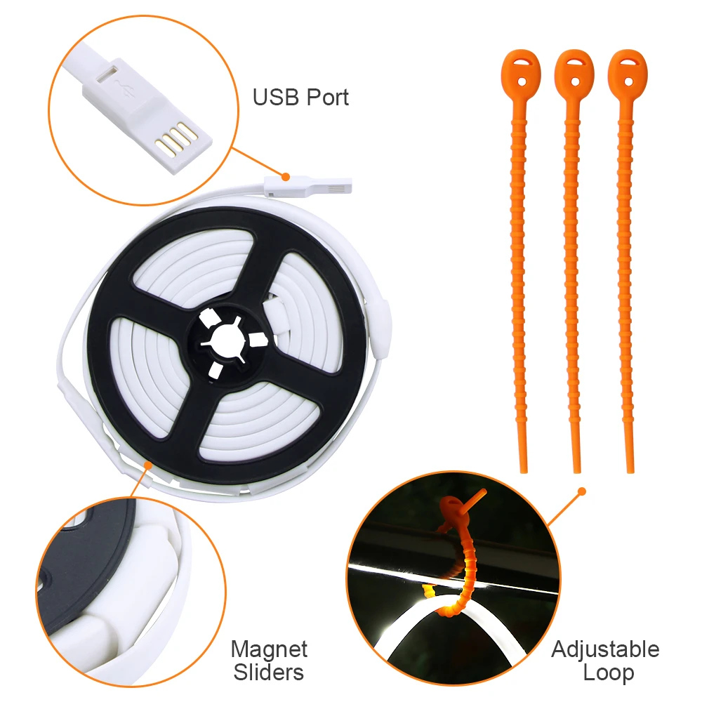 Гибкая светодиодная лента 150 см с питанием от USB, переносная наружная кемпинговая лампа для палатки, походная лампа