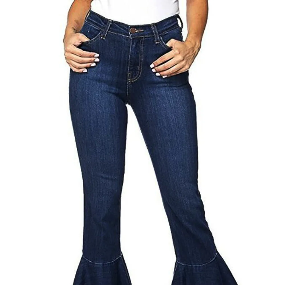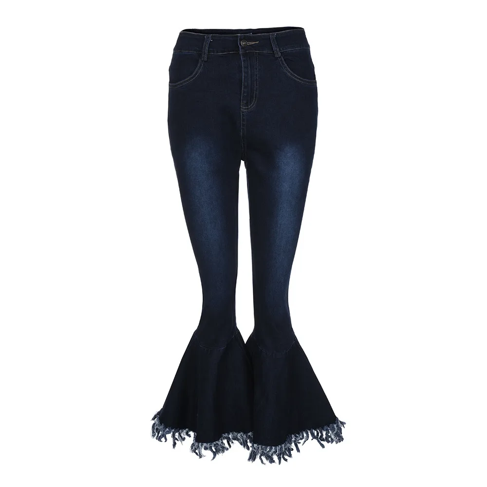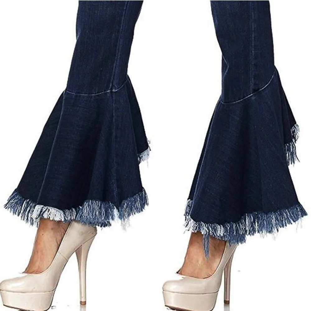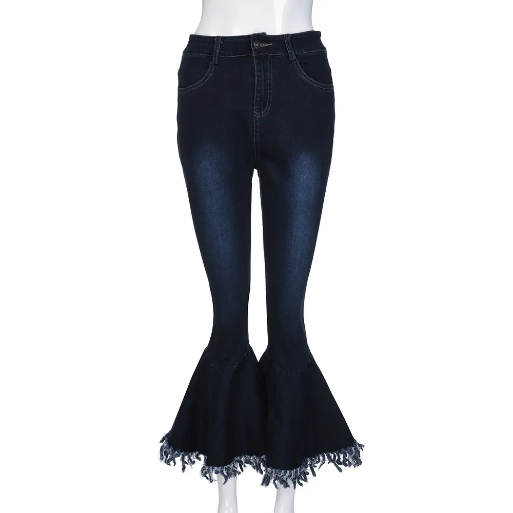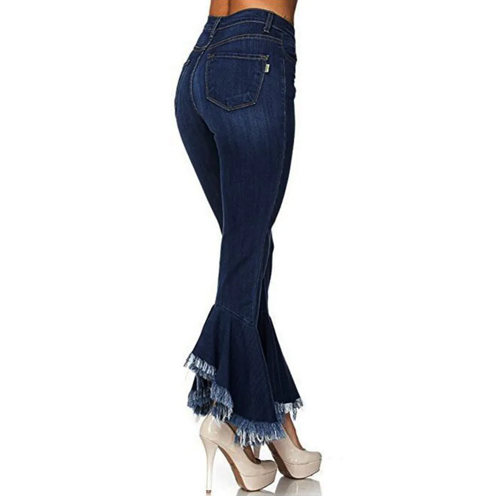 Женские джинсы с высокой талией, узкие джинсы с дырками, Стрейчевые узкие брюки, джинсы с расклешенными штанинами