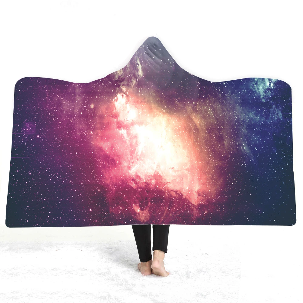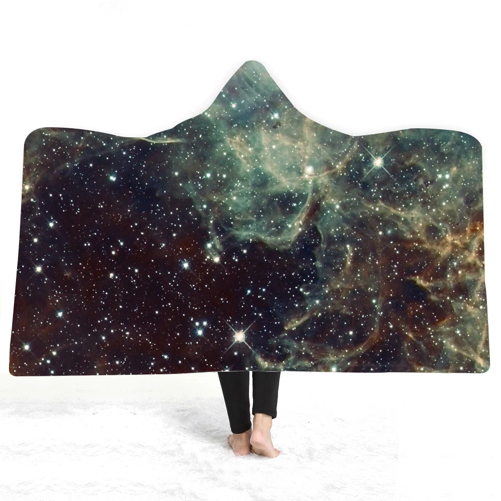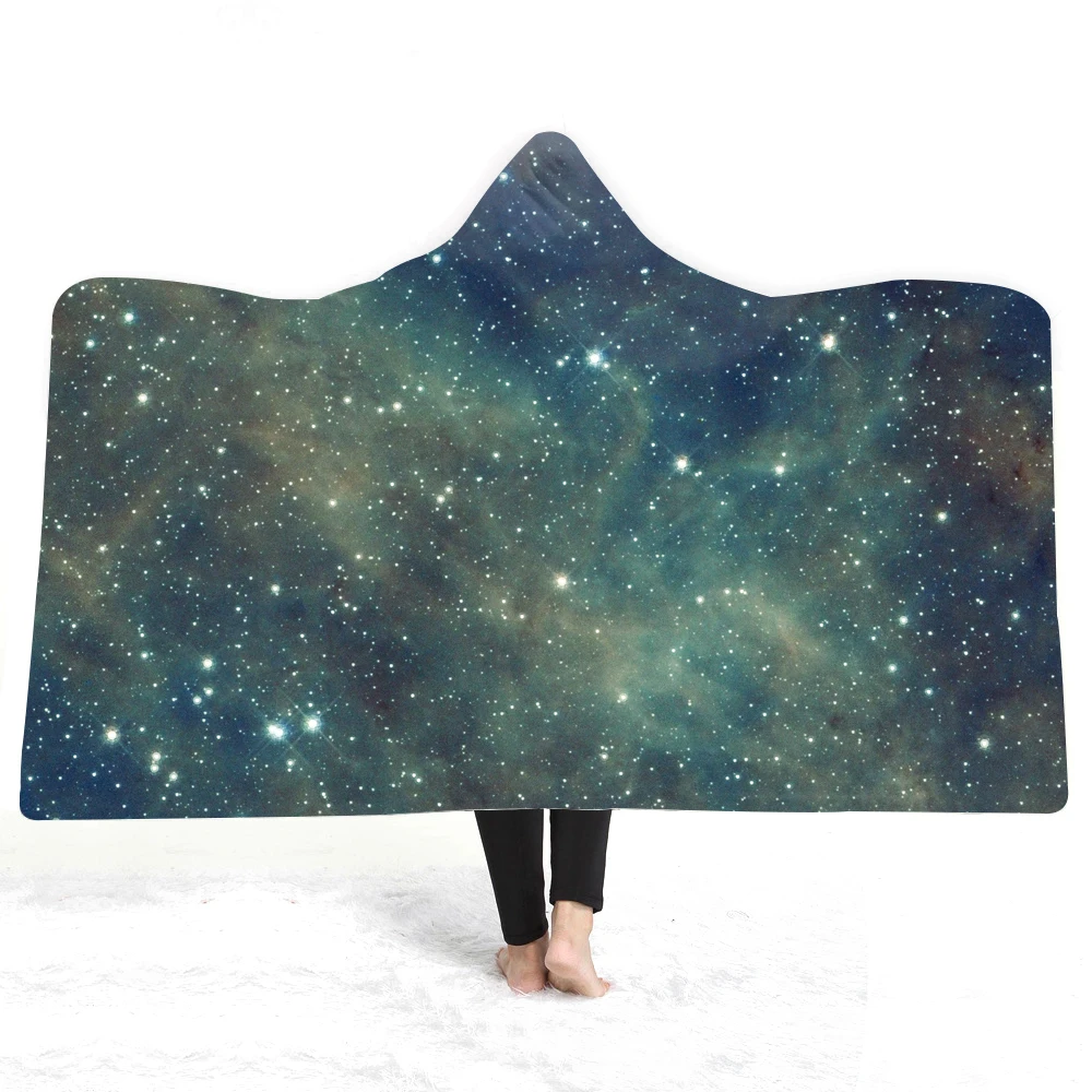 3D Star Universe Hooded Blanket Sherpa Fleece Ocean Blue Wearable Plush Throw Blanket on Bed Sofa Thick Warm Throw Blanket 1.5*2m/1.5*1.3m