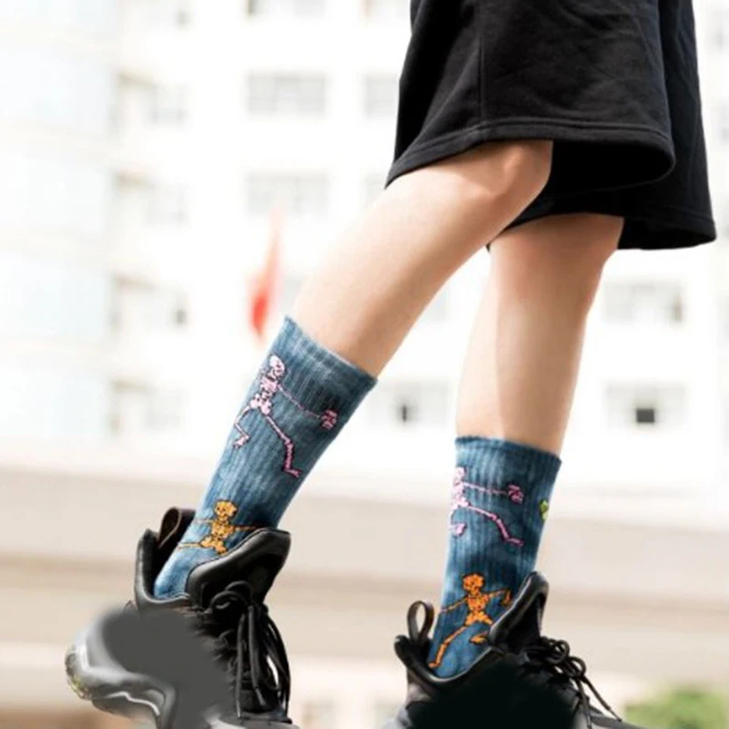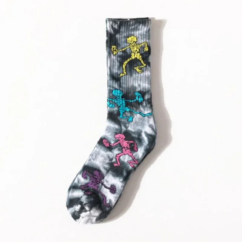 Окрашенный вручную носки скелет Модные длинные носки с узором для мужчин скейтборд носки для Hiphop