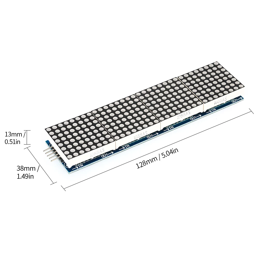 Размер модуля измеряется в 128*38*13 мм (5,04*1,49 * 0.51in).