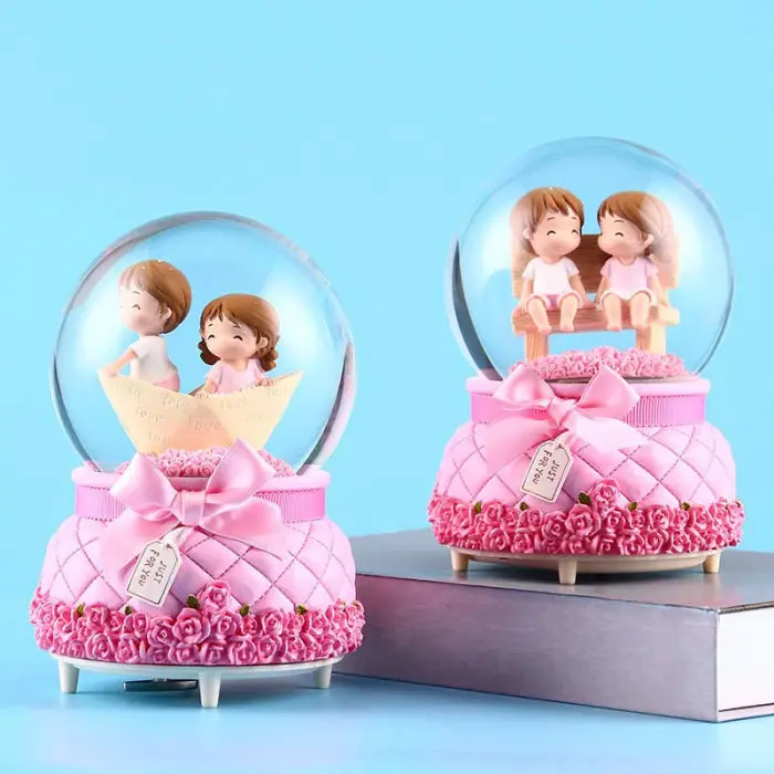 Пара хрустальный шар снежинка музыкальный светильник стеклянный шар из смолы на День святого Валентина подарки JS22