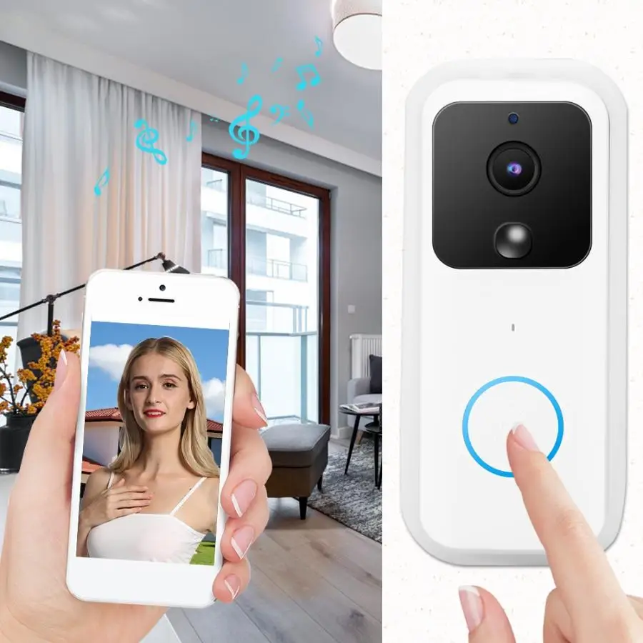 1080P бесшумного двустороннего общения в режиме реального времени для iOS, совместимых приложений. Широкоугольный объектив 166 ° с разрешением 1080P HD. Разрешение камеры дверного звонка и возможность WDR обеспечивают лучшую четкость независимо от погодных условий. Скачайте приложение anyhome'' на свой телефон и Подключитесь к Wi-Fi. Установите и закрепите основание кронштейна дверного звонка Wi-Fi, вставьте дверной звонок и винт в гайку ТАМПЕРА. Дверной звонок камеры работает от аккумулятора, и не требует подключения. Сверхнизкое энергопотребление и длительное время работы в режиме ожидания. В режиме ожидания умный дверной звонок может работать регулярно в течение более 6 месяцев. Две аккумуляторные батареи 18650 могут быть заряжены через кабель Micro USB. Дверной звонок камеры можно заряжать через Универсальный адаптер для телефона 5 в 2 А. Встроенный свободный Многофункциональный рингтон, просто подключите дверной звонок к розетке. Для вас есть 52 Мелодии и 4 регулируемых громкости на выбор. Инновационный дизайн, супер-яркий стробоскоп, идеальная колонка, ее объем более 95 децибел приносит неожиданные качества. Детектор движения PIR и инфракрасный ночной режим, если кто-то стоит за дверью, беспроводной дверной звонок сделает фотографию гостя и отправит вам сообщение. Инфракрасный светильник включается автоматически в ночное время.
