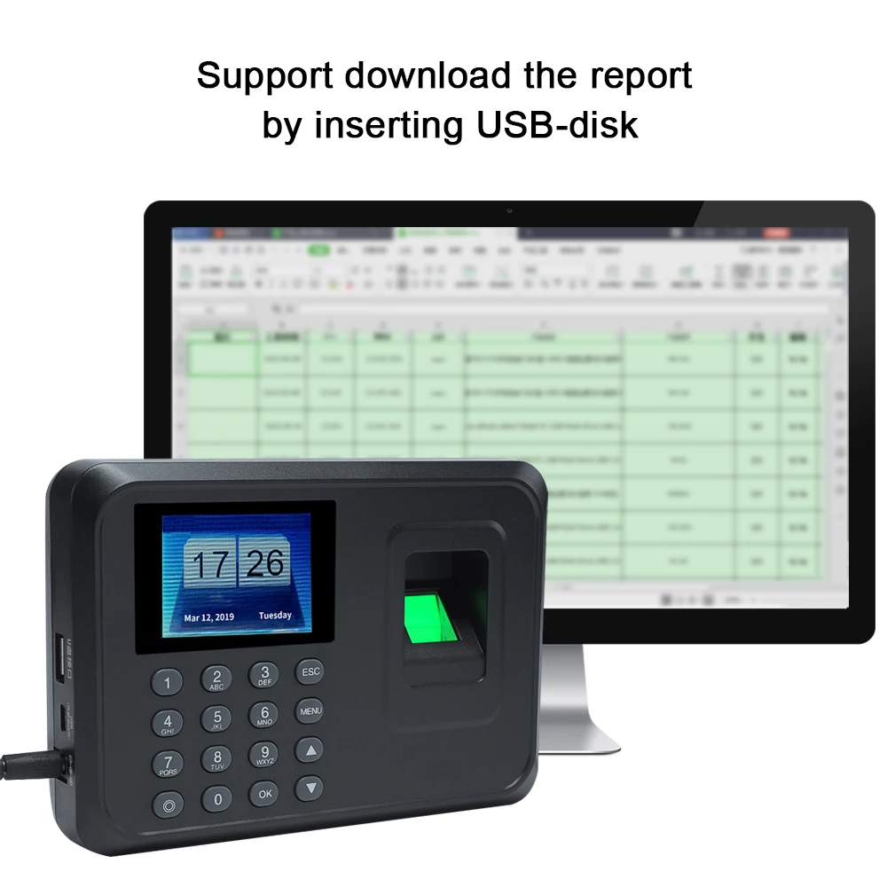Интеллектуальный биометрический отпечаток пальца машина для регистрации паролей работник проверка-в рекордер 2,4 дюймов TFT ЖК-экран DC 5 V часы-Регистратор посещений