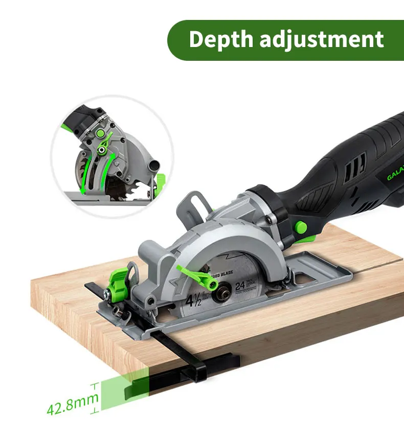 Мощный и компактный-двигатель 705 Вт, эквивалентный 705 Вт пила обеспечивает полноразмерную производительность при 3500 об/мин для резки плитки, дерева, металла, пластмасс, напольных покрытий в один проход; расположение двигателя отделяет переднюю и заднюю гравитацию, что делает операционную часть подходящей для различных размеров руки