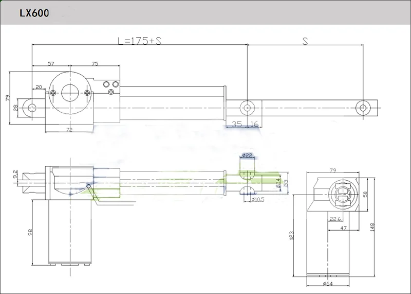 Линейный привод LX600 6000N/1000N, 12 В/24 В Storke 250 мм для автомобильного стула, подъемного двигателя линейного привода