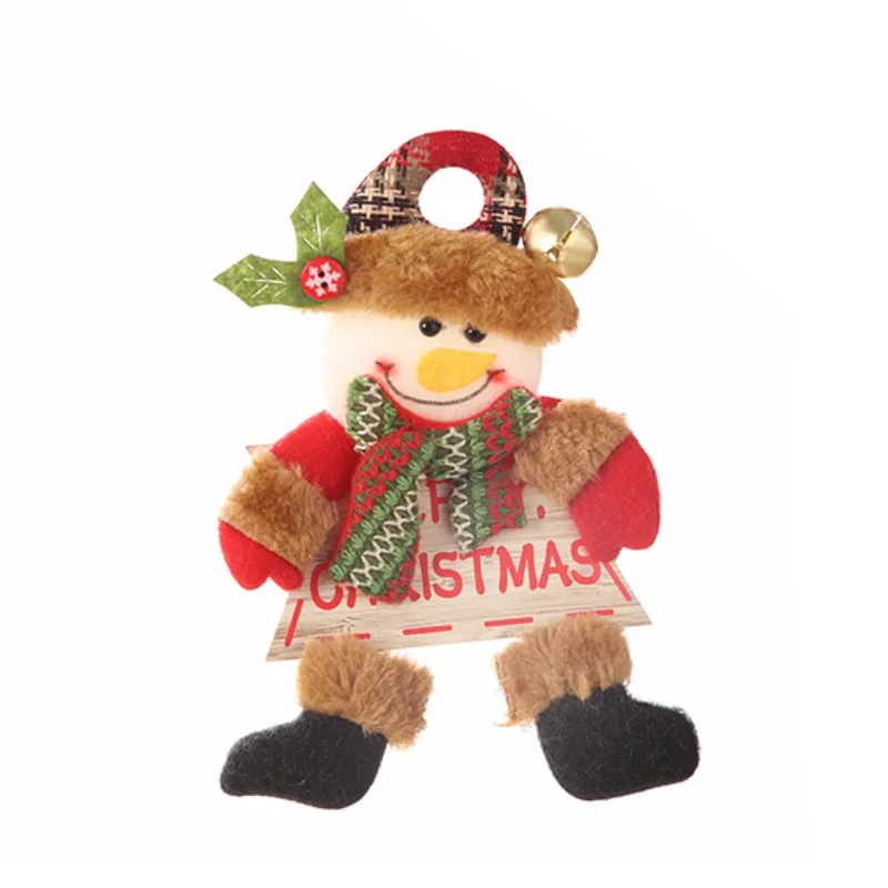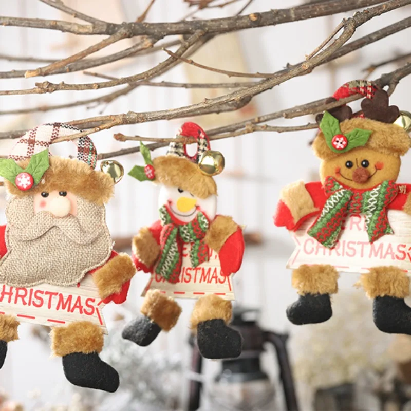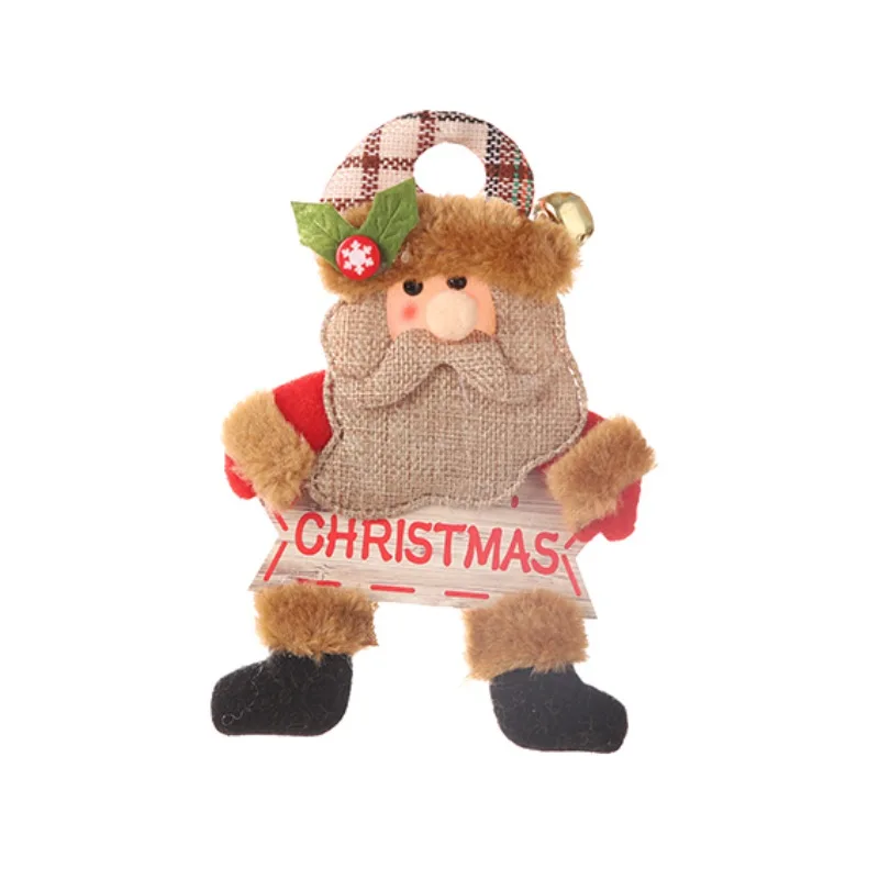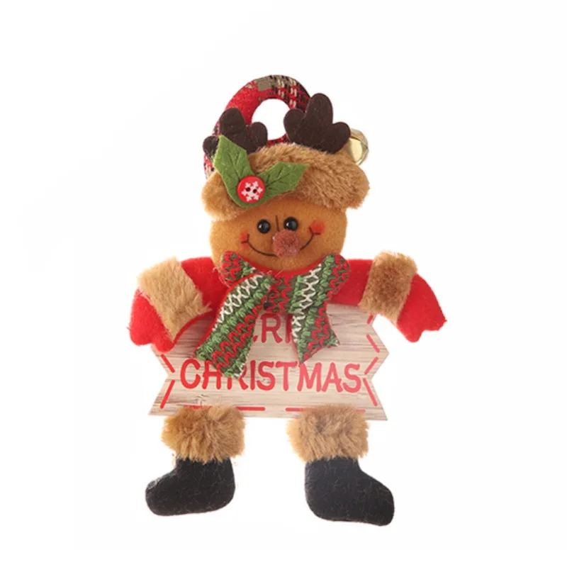 Christmas Plush Doll with Gold Bell Wood Sign for Home Door Xmas Tree Hanging Decoration Santa Claus Snowman Elk Scarf Ornaments