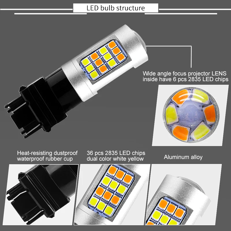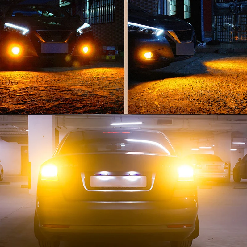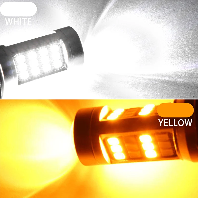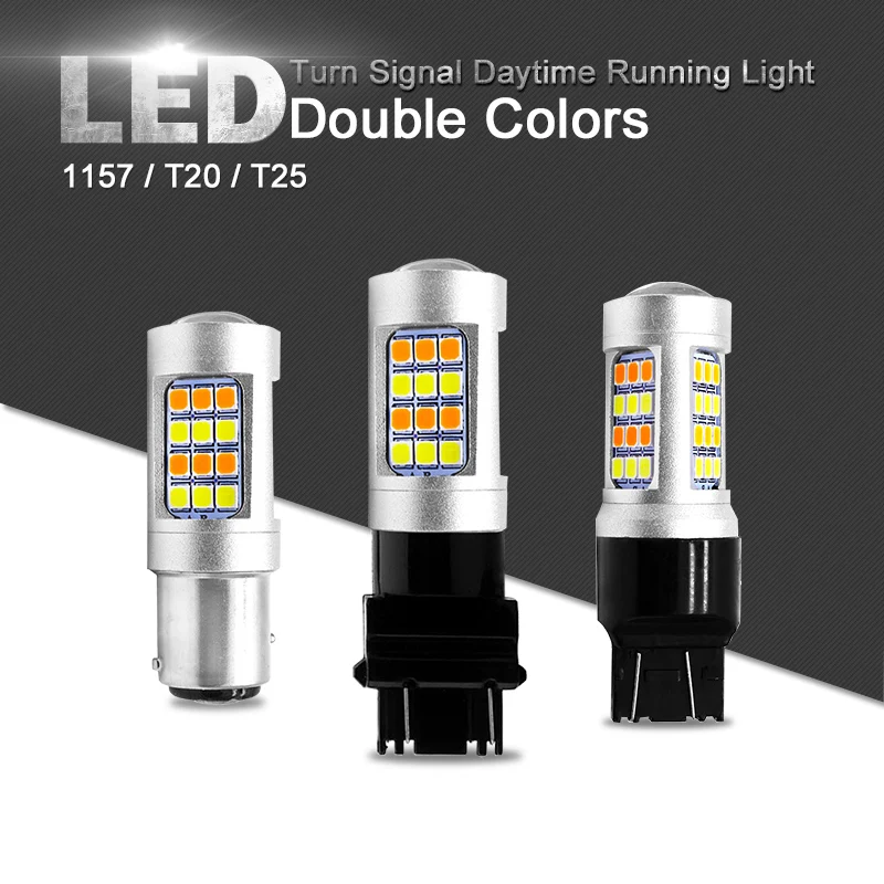 Двойной Цвет мини светодиодные лампы 1157 3157 7443 сигнала поворота светильник s желтый DRL Белый T20 T25 BAY15D светодиодный автомобильный тормоз светильник, сигнализирующий фонарь