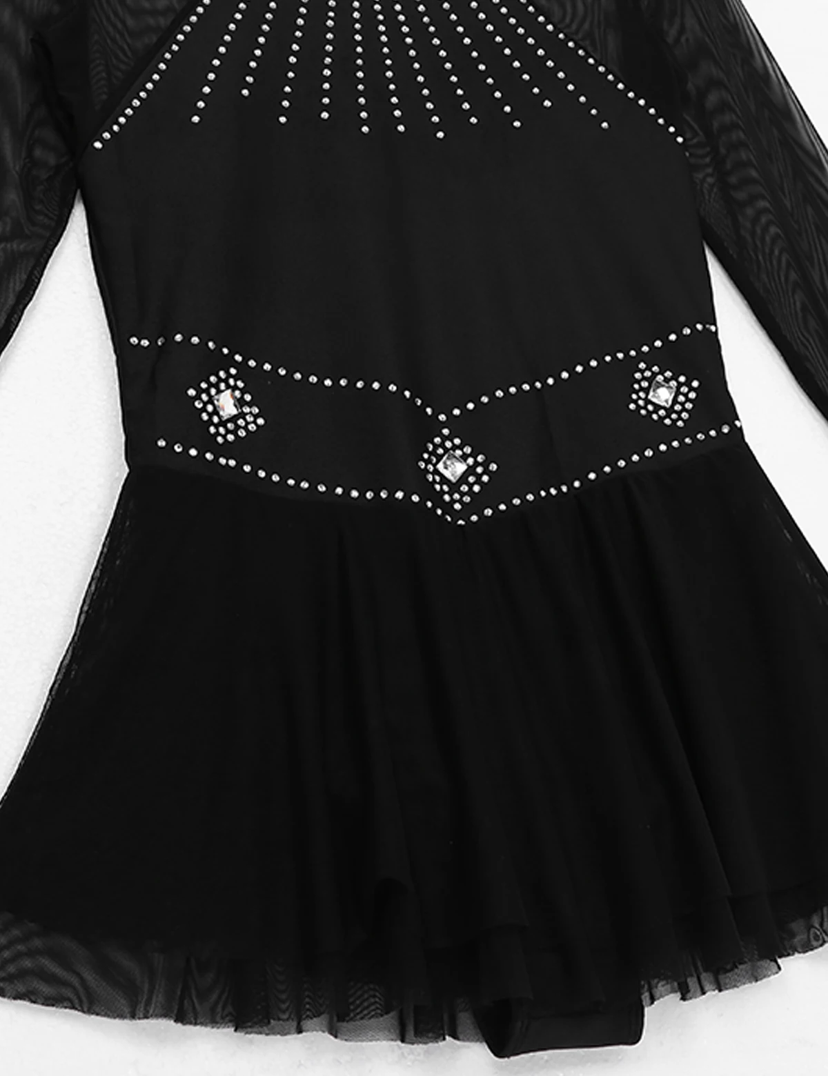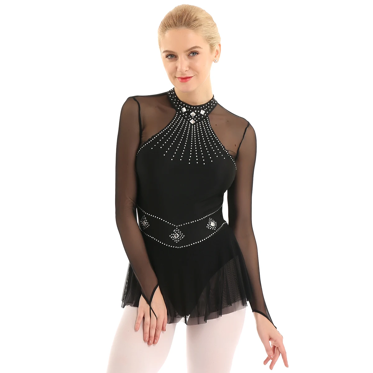 Для женщин Взрослый блестящие стразы купальник Танцы платье на фигурных коньках платье, без застежки.