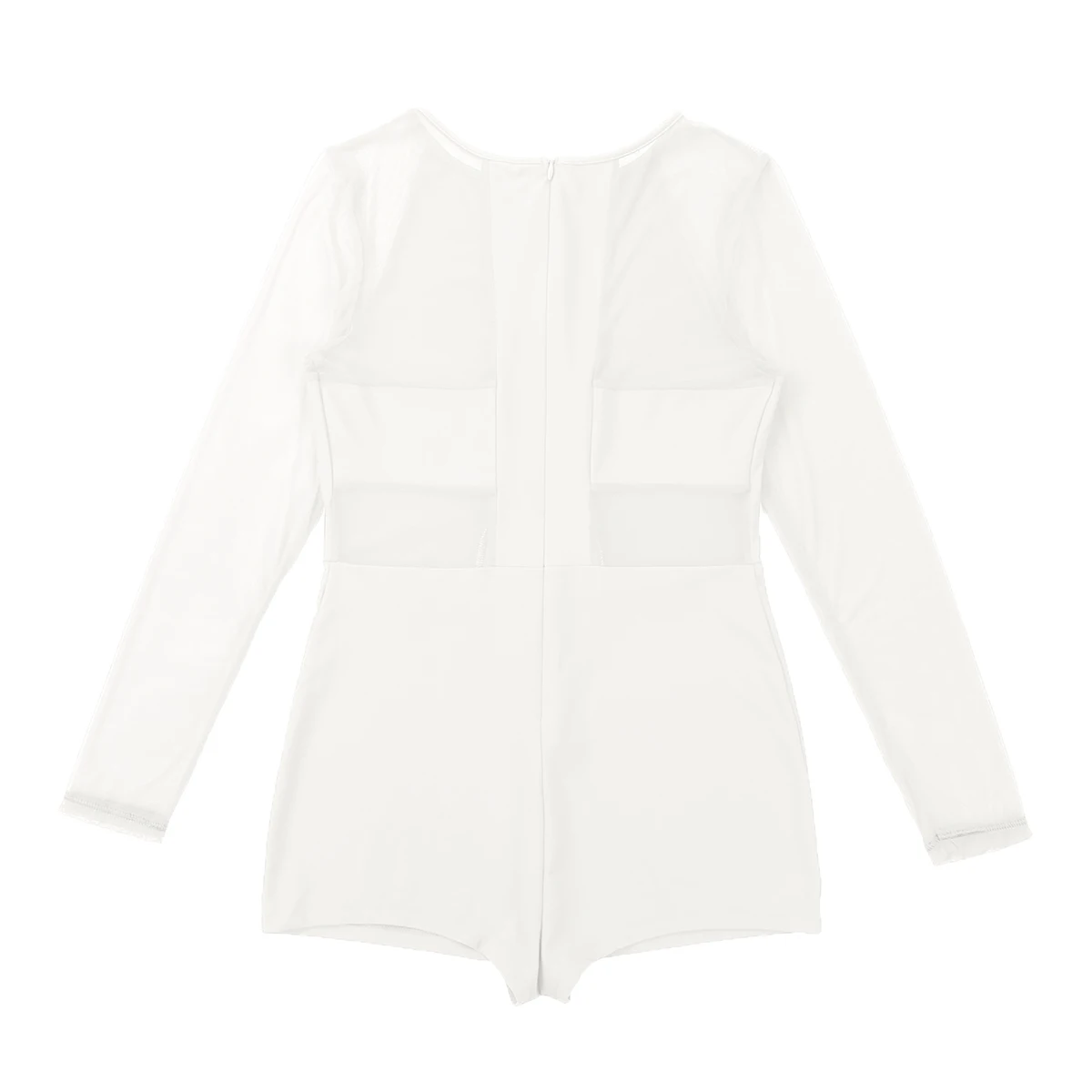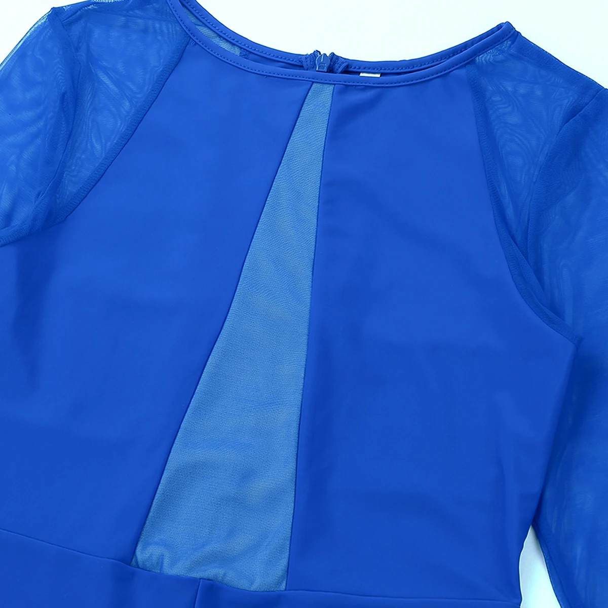 Круглый вырез горловины и длинные рукава, сетчатый v-образный вырез спереди на подкладке белого цвета, уникальный сетчатый пэчворк, застежка-молния сзади.