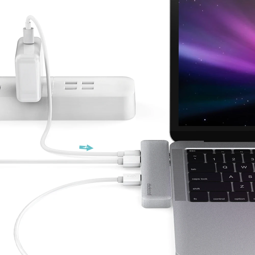 Dodocool Алюминий сплав 7-в-1 многопортовый концентратор с двойным USB-C разъемы легко добавляет три порта USB 3,0 Тип-порты, один выходной порт HD, один слот для карт памяти TF, один слот для sd-карты и один порт USB 3,1 type-C. Идеальное решение для вашего MacBook Pro с двумя имеющимися портами Thunderbolt 3 (USB-C). Это стильное компактное устройство не требует внешнего источника питания, поэтому оно аккуратно помещается в офис. Вы также можете легко скользить в сумку в деловых поездках.