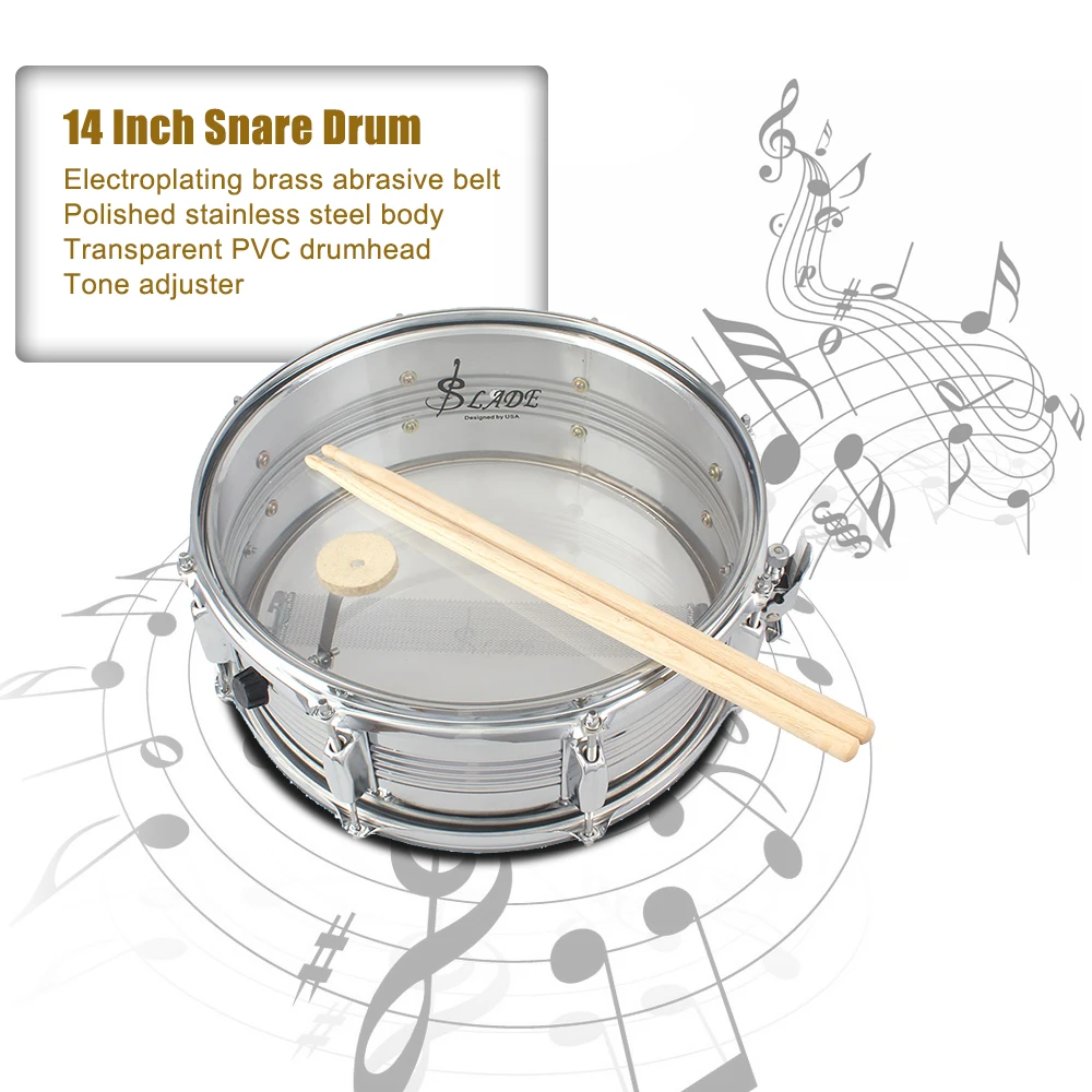 14in Snare барабан урна из нержавеющей стали корпус прозрачный ПВХ барабанная головка с футляром палочки перчатки плечевой ремень для студентов