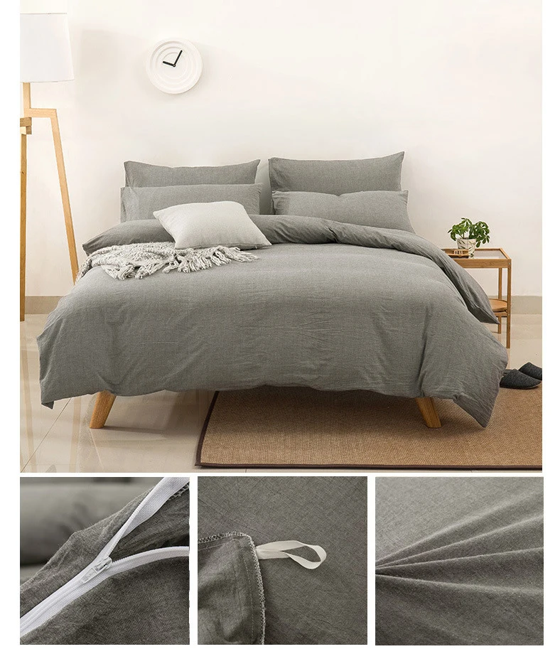 Японские черные постельные принадлежности, Моющийся хлопок, сплошной цвет, постельное белье, простыня, Королевский размер, Комплект постельного белья, двойной пододеяльник, 4 шт.