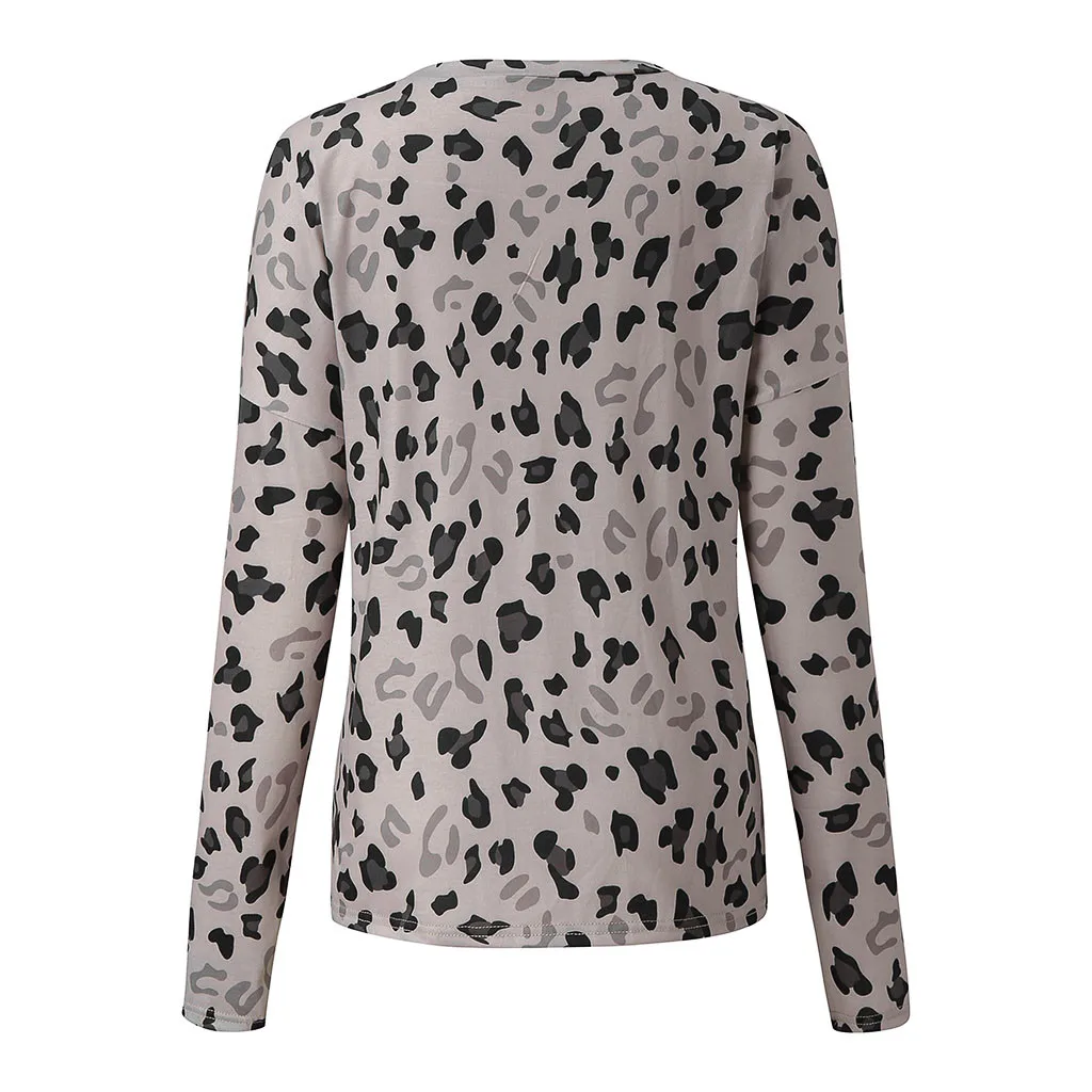 Женский модный Леопардовый принт, сексуальный топ с v-образным вырезом и длинным рукавом, Повседневная Блузка