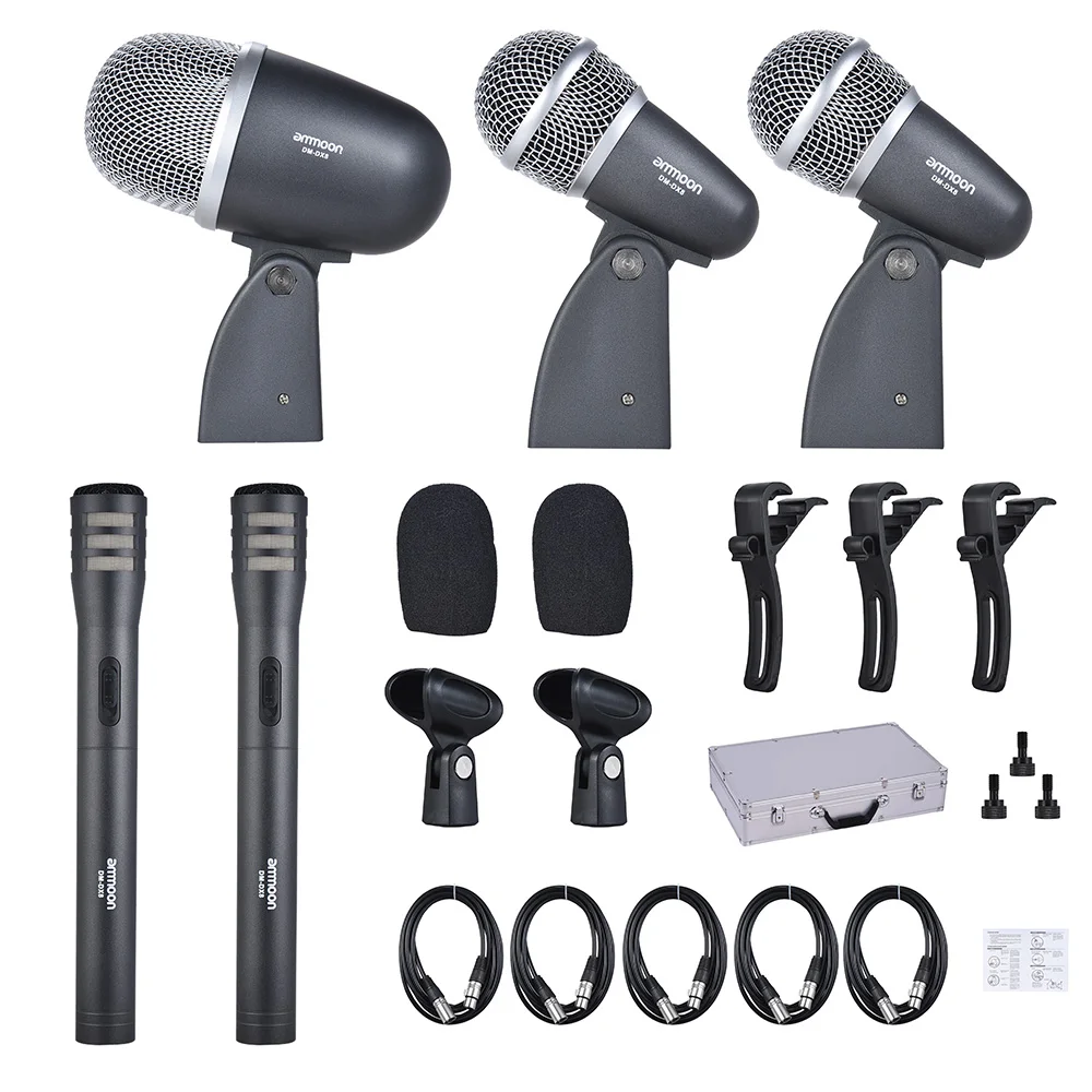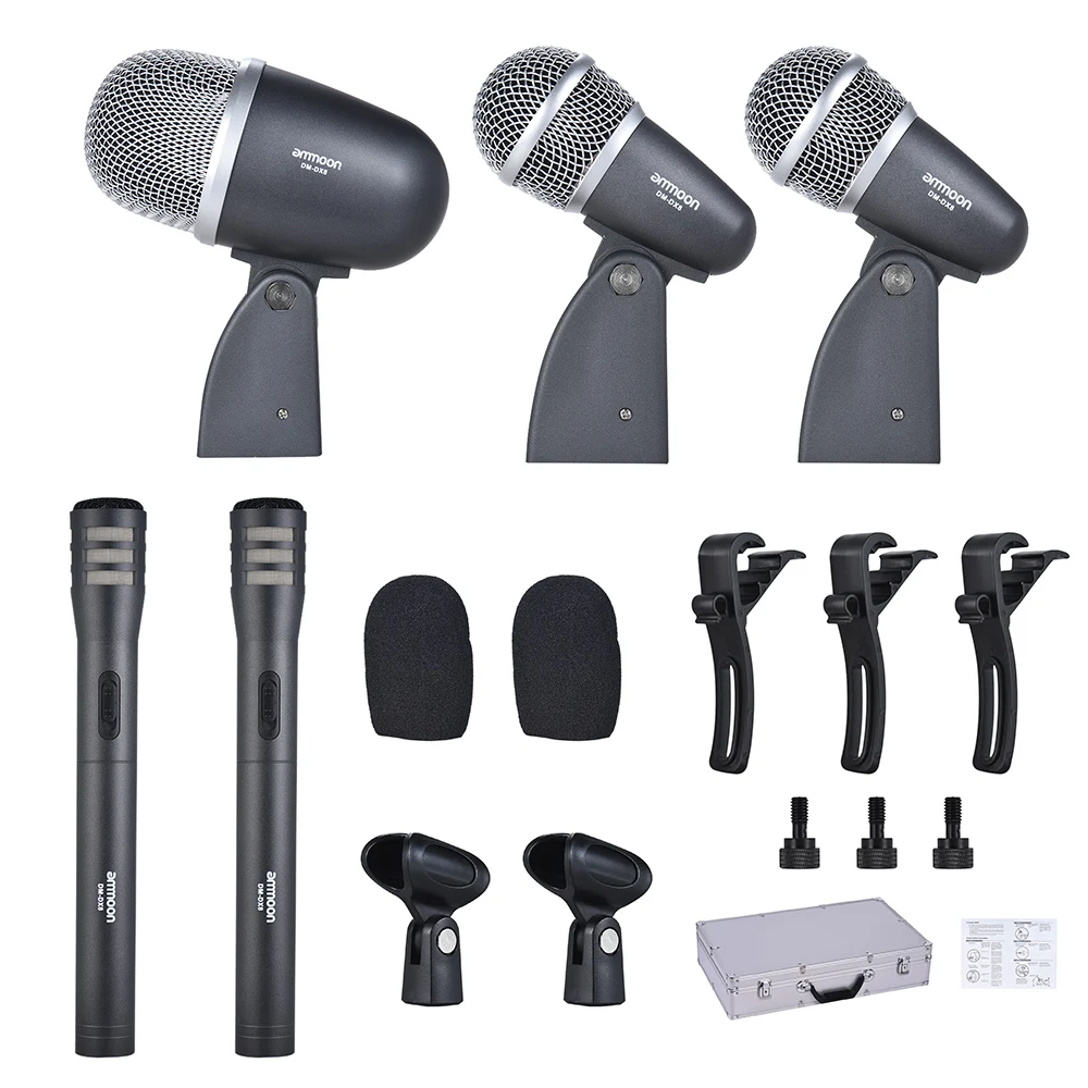 В том числе 1 большой барабанный микрофон, 2 небольших барабанные микрофоны и 2 конденсаторных микрофона для захвата различных звуков.