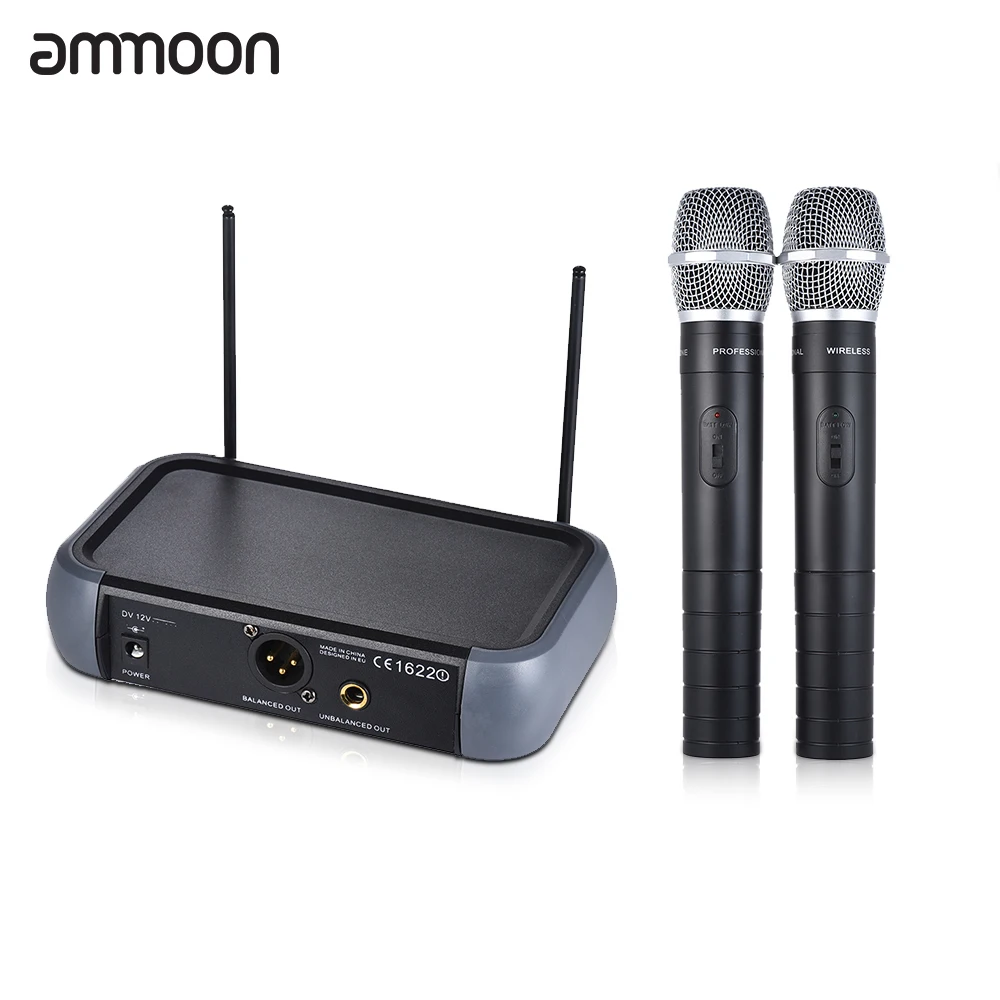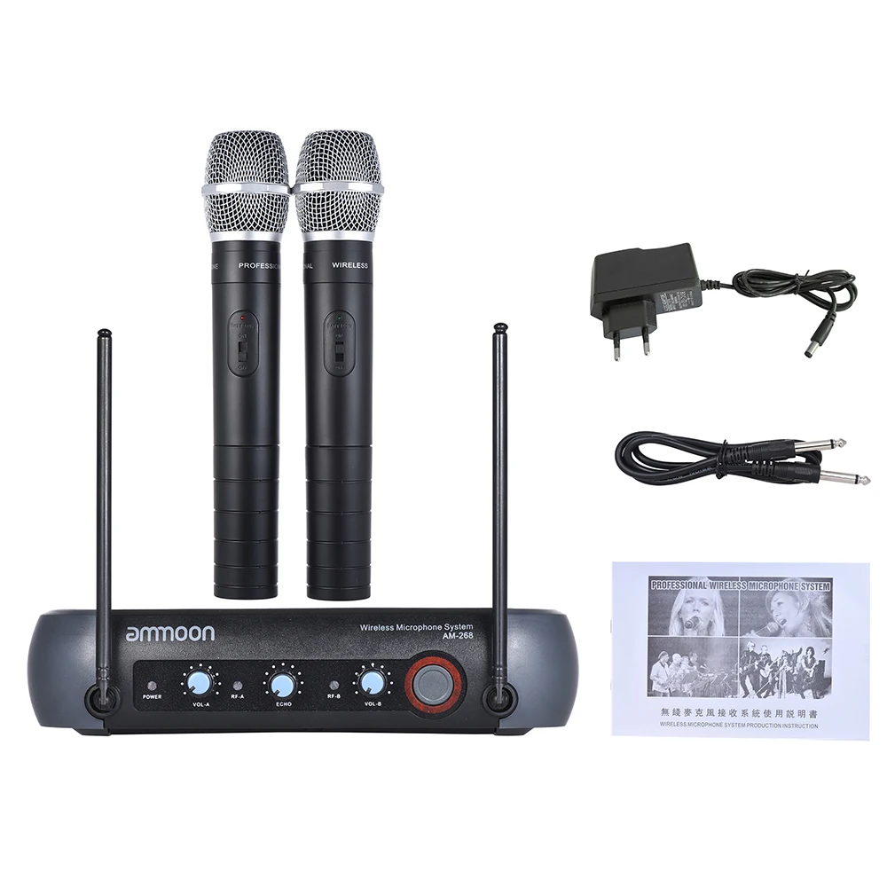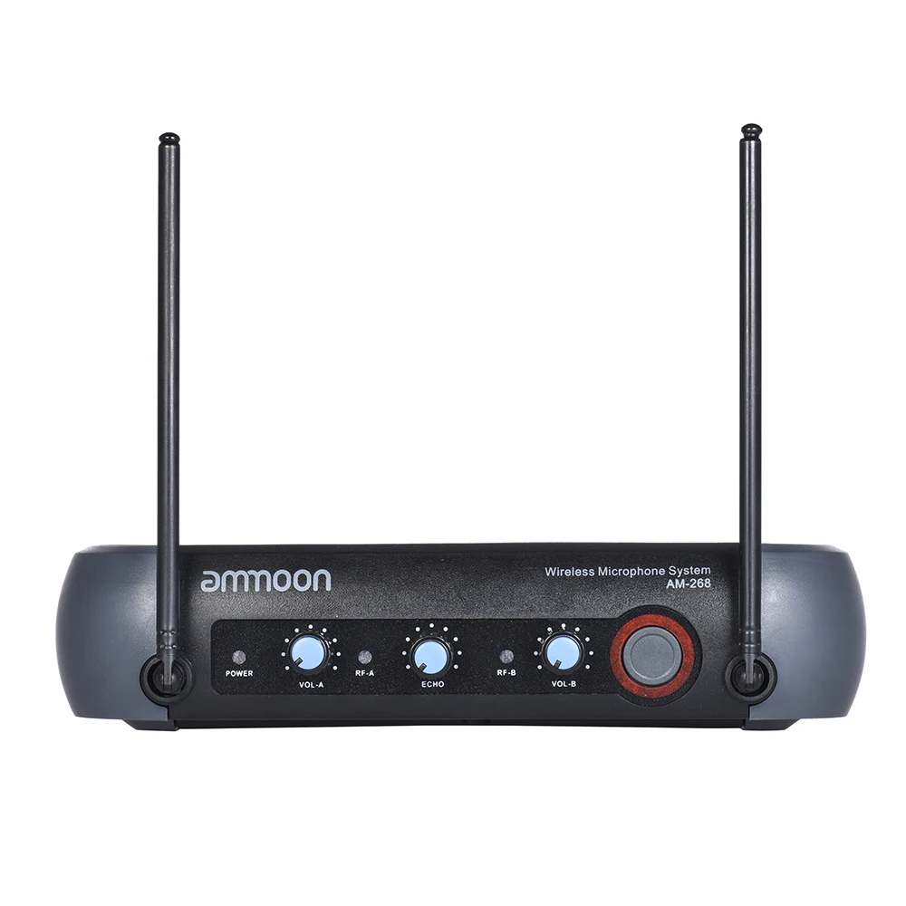 dual channel VHF wireless handheld microphone system, features VHF 210-280MHz, with Echo function, high signal/noise ratio performance offers stable signal transmit and clear sound quality.