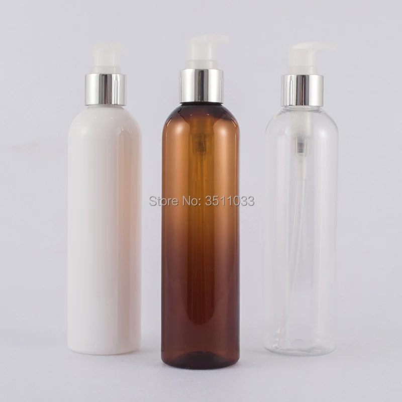 250 мл янтарная пластиковая Косметическая эмульсия бутылка для лосьона Серебряная головка насоса шампунь упаковка для геля для душа контейнер белый прозрачный