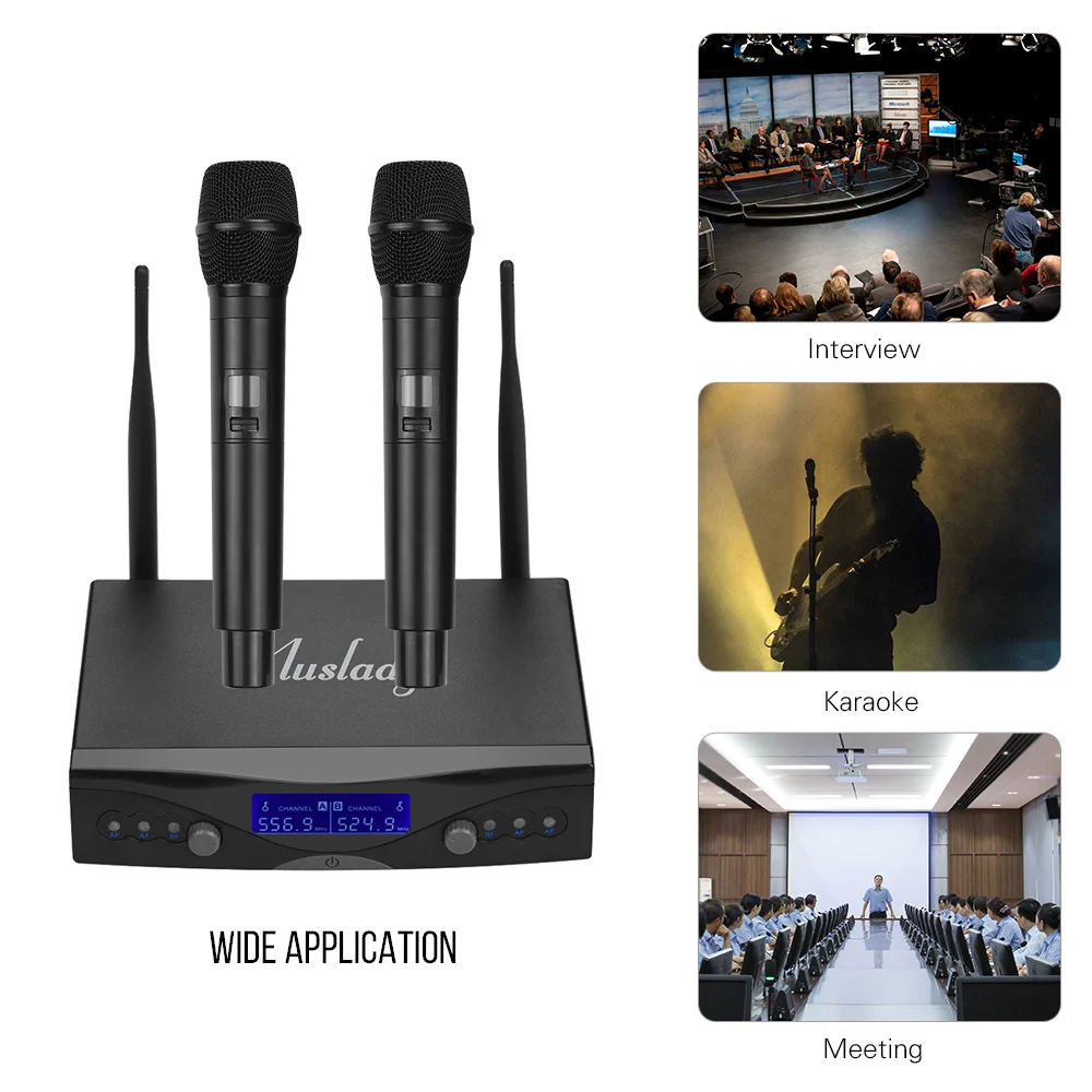 Беспроводной микрофон системы для цифровых зеркальных камер с 2 ручной микрофоны и приемник-1 шт.), подходит для домашнее караоке, деловой встречи, речи, обучения и т. д.