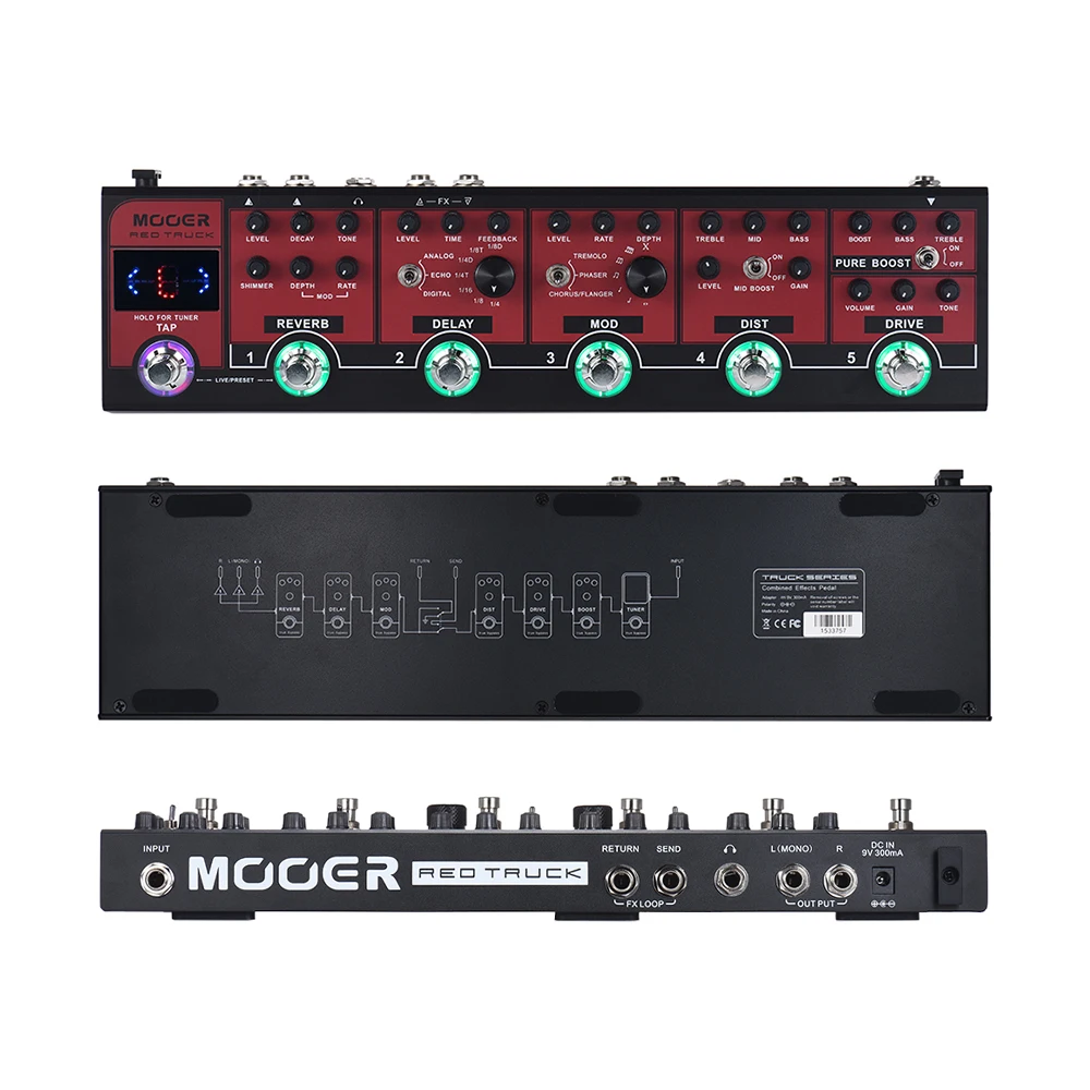 Красный грузовик 6 в 1 комбинированный эффект педаль Boost + Overdrive + искажения + модуляции + задержка + реверберации Встроенный тюнер