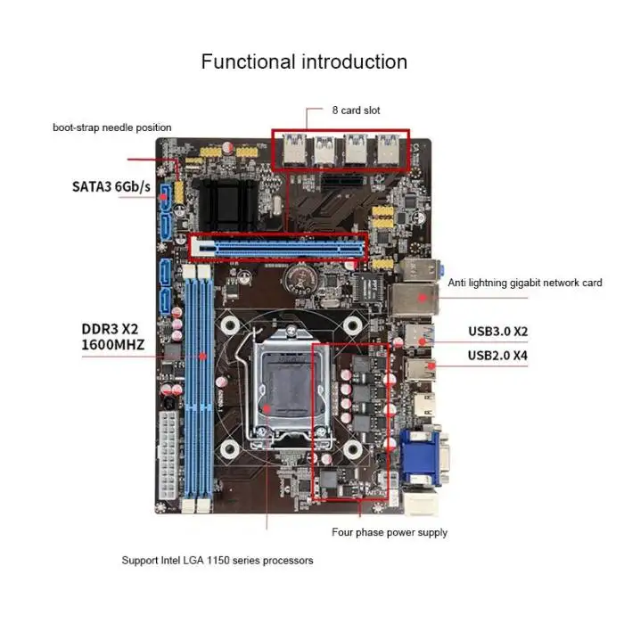 B85 BTC + ETH Майнинг Биткоин 8 PCI-E USB3.0, прямой слот для материнской платы для Intel LFX-ING