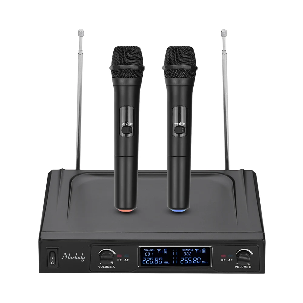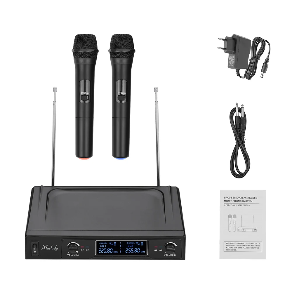 Беспроводной микрофон системы для цифровых зеркальных камер с 2 ручной микрофоны и приемник-1 шт.), подходит для домашнее караоке, деловой встречи, речи, обучения и т. д.