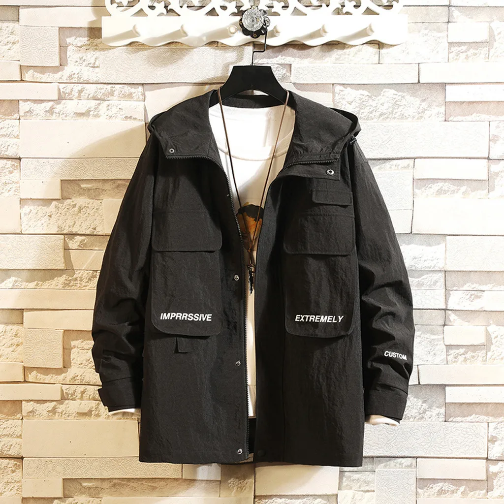 Мужская осенне-зимняя повседневная модная Лоскутная Толстовка с капюшоном с несколькими карманами, верхняя одежда, пальто