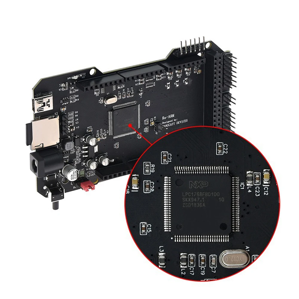 RE-ARM-это 100 МГц, 32-разрядный контроллер рычага. Это Подключаемый модуль Мега В пандусы установки для быстрой и легкой обновление до 32 бит совершенство.