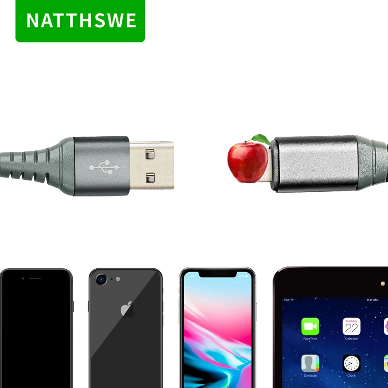 NATTHSWE серый Apple интерфейс USB кабель для передачи данных быстрой зарядки для iPhone X 7 6 8 Plus 10 XS MAX XR и iPad Mini IOS 9 10 11