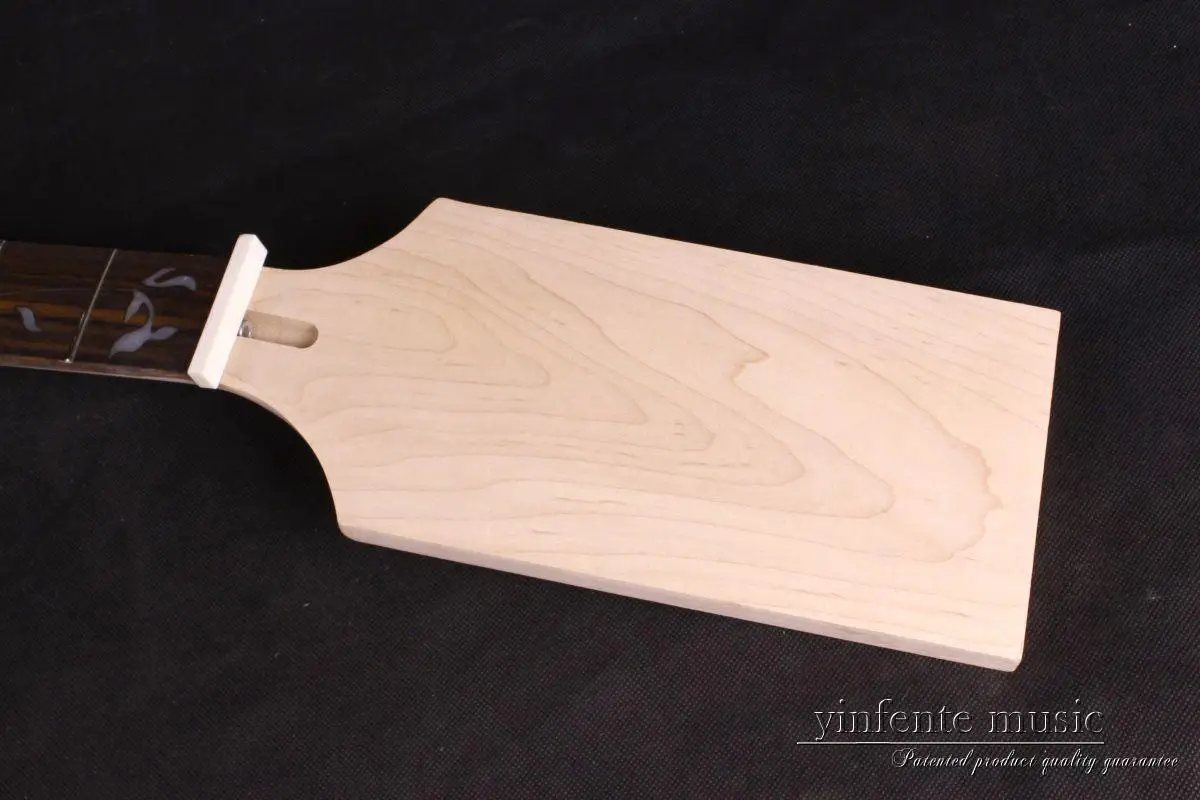 Особенности шеи электрогитары: Новая электрическая гитара басовая Шея весло. 34 дюймов Длина шкалы Дерево шеи: клен, 42 мм гайка и 63 мм пятка Древесина грифа: розовое дерево Отделка: незавершенной Декор: прекрасно инкрустированные Лады: 24 Джамбо никелевые лады Шпренгельная стяжка регулировки: на складе