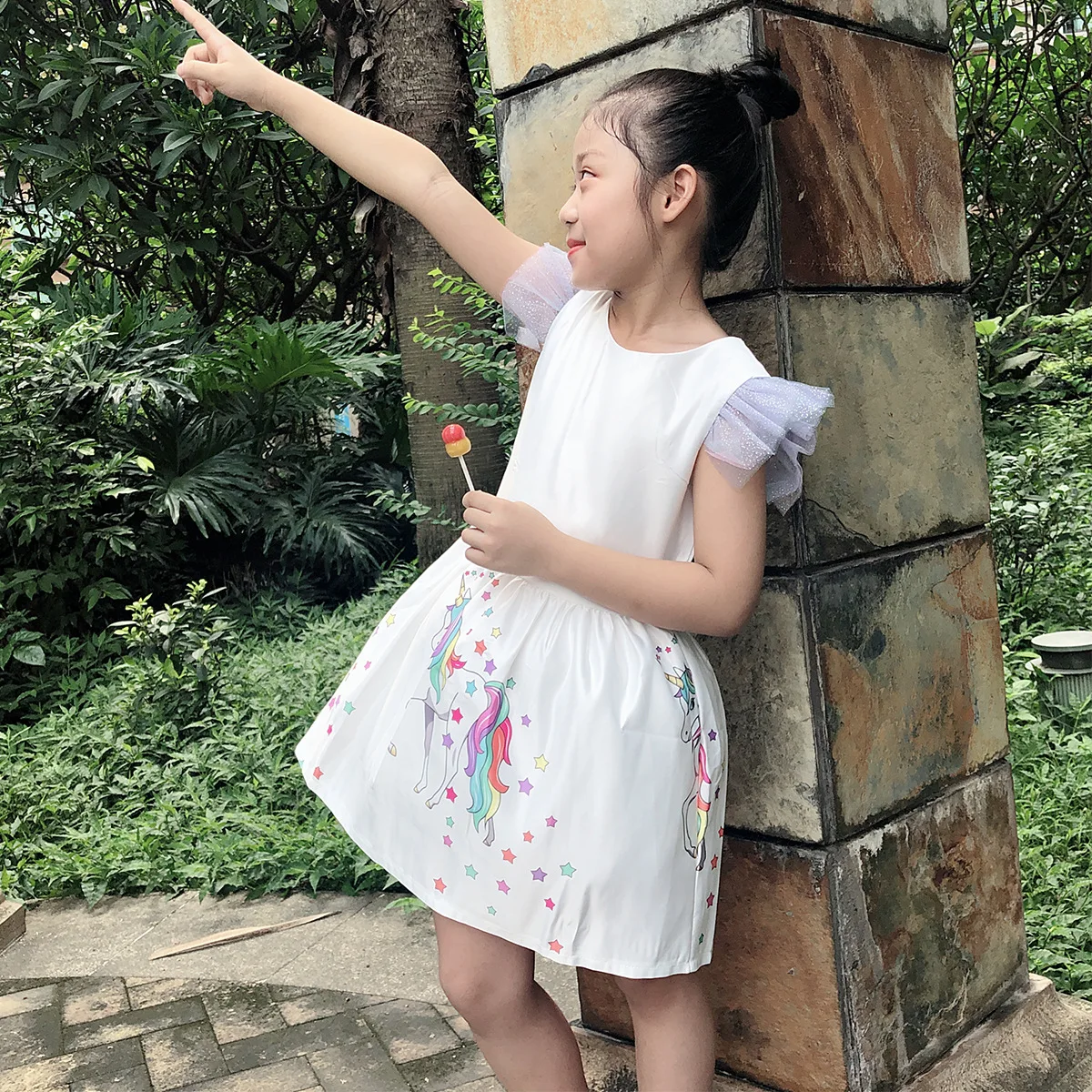 Коллекция 2019 года, платье принцессы на Хэллоуин для девочек платье с единорогом детское Радужное платье для дня рождения для девочек Сетчатое платье со съемным шлейфом