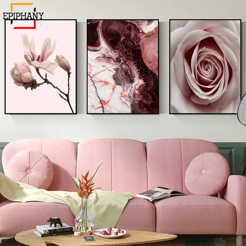 Скандинавский стиль, розовый цветок, женские парусиновые постеры и принты, настенная живопись, скандинавское украшение, фотографии, современный домашний декор