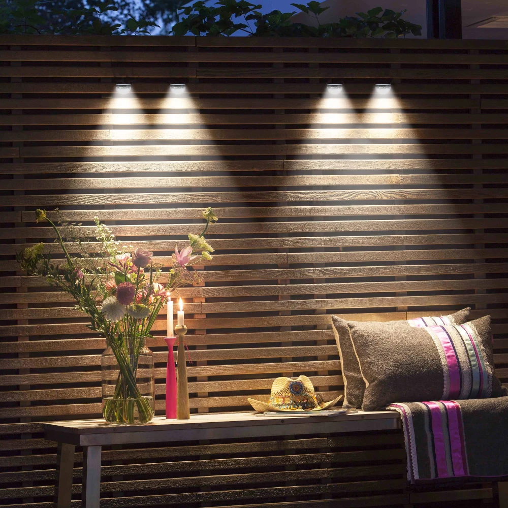 Легко и быстро крепится на стену.Автоматическая зарядка в день и автоматический светильник в темноте.Водонепроницаемый, термостойкий и прочный.Энергосбережение, защита окружающей среды.Более 8 часов использования после одного дня зарядки.Характеристики:Наименование товара: светодиодный светильник на солнечной батарееИзлучаемый Цвет: белыйКоличество СВЕТОДИОДНЫЙ: 6 шт.Скорость IP: IP44Режим: светильникБатарея: 1*1,2 V 200mAh AA, никель-металл-гидридный перезаряжаемый аккумулятор БатареяРазмеры: 9,7 см x 6,6 смВремя зарядки: 6-8 чВремя использования: >8hПрименение: двор, сад, проход, крыльцо, патио, подъездная дорога и т. д.Материал: АБС-пластик + ПоликарбонатПосылка включает в себя:2 х светодиодный светильник на солнечной батарее1 х Упаковка аксессуаровПримечание:Переключатель находится внутри крышки лампы.Время работы и световой эффект зависят от времени экспозиции солнца.