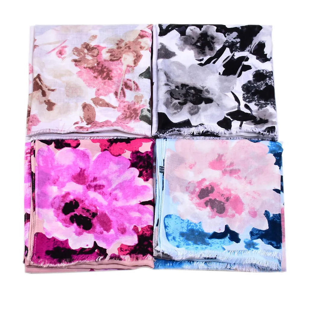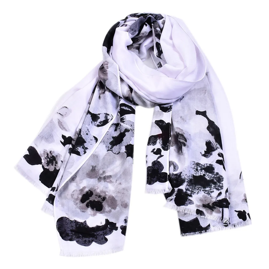 Шелковый шарф с цветочным принтом; Длинные легкие женские модные шарфы для любого сезона