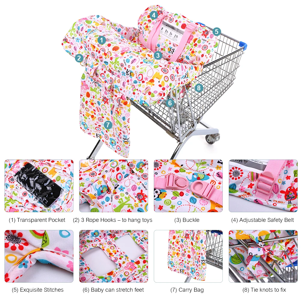 Сиденье тележки для покупок можно легко прикрепить к любой размер тележки для покупок мгновенно создавая второе сиденье. Ребенок будет в безопасности и удобен, сидя на своем мягком сидении. Когда не используется, просто сложите его и скрутите в прилагаемый мешок, чтобы хранить в сумке для подгузников или автомобиле. С этим надежным сиденьем, вы готовы сделать несколько покупок!